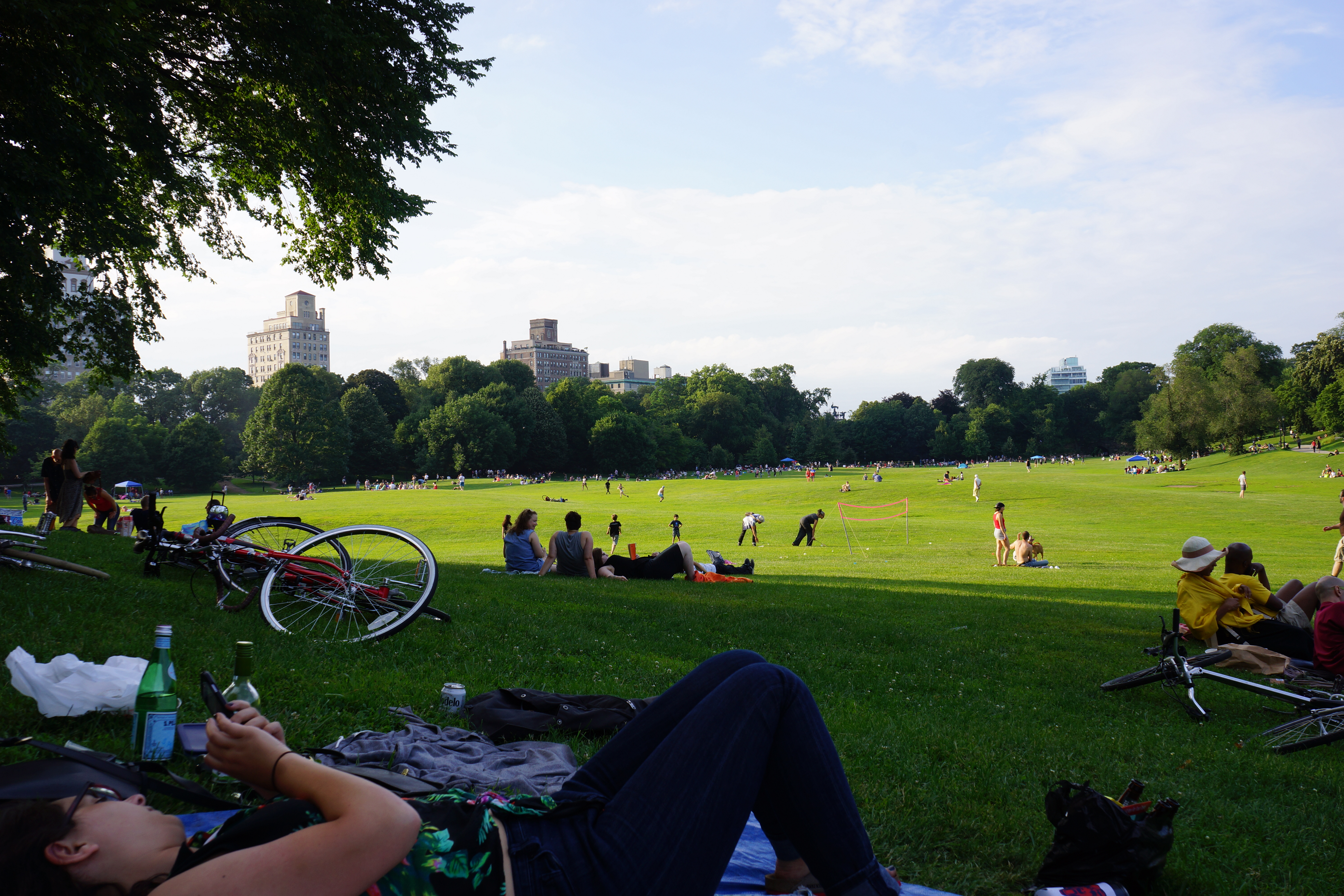Governor’s Island liegt nicht weit vom Festland, südlich der Spitze von Manhattan. Wir brettern mit der Fähre über den Buttermilk Channel hinüber und finden wieder ein Park. Die Insel ist ein ehemaliges Militärgelände auf dem heute Foodtrucks ihre Burgerpatties grillen, Touristen die Aussicht auf die Skyline und Lady Liberty genießen und auf der weitläufigen hügeligen Wiese rund um das Hauptgebäude die Picknickdecken ausbreiten. Trotz der Besucherscharen, die hier jede Stunde mit dem Boot einfallen, verteilen sich die Massen schnell. Keine Spur von der Hektik Manhattans. So klingt der Tag aus, wir nehmen die Fähre zurück aufs Festland und streifen mit der untergehenden Sonne durch den dicht bevölkerten Brooklyn Bridge Park der Subway entgegen. New York, New York – es war schön dich wiederzusehen, aber ich glaube das reicht mir jetzt mit Stadt. Es ist Zeit aufzubrechen…