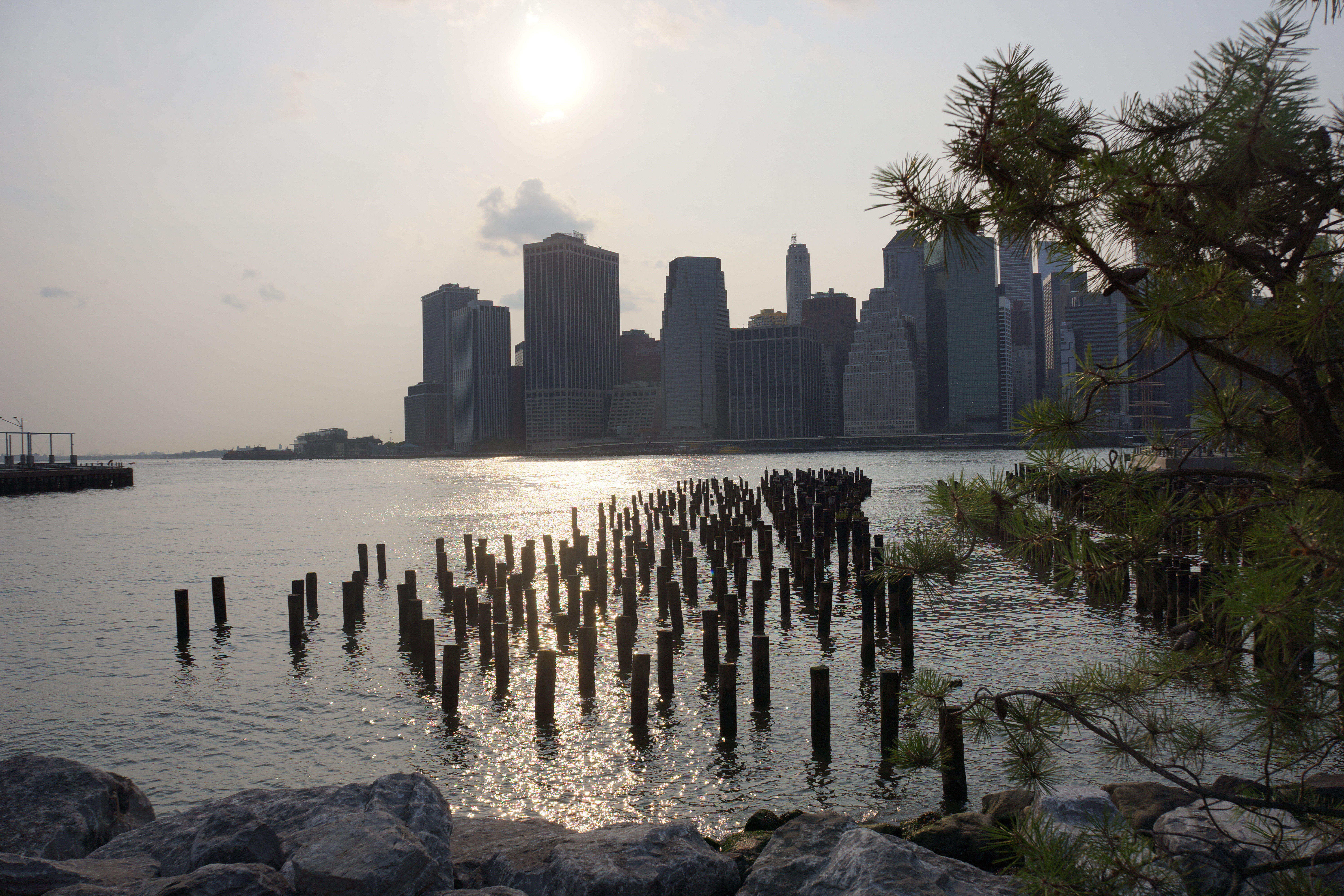 Ich schnüre die Laufschuhe um 5:52 Uhr, der Jetlag hat mich noch fest im Griff. Die 30 Grad des gestrigen Tages liegen noch in der Luft. Es ist schwül als ich aus den Jefferson Towers trete, immerhin kühler als tagsüber. Eine leichte Brise weht durch die Straßenschluchten. Ich trabe los, die 95. Straße nach Westen quere ich die Amsterdam Avenue und den Broadway. Am Hudson ist um diese Uhrzeit schon Betrieb, den neonfarbenen Läufern und Radfahrern gehören die lanes des Riverside Park. Ich reihe mich ein in den frühsportlichen Wahnsinn. Ein Stand up Paddler arbeitet sich nahe des Ufers stromaufwärts nach Norden, einige Minuten gleiten wir nebeneinander her, vorbei an den Booten, deren Masten und Rümpfe rötlich gefärbt sind von der aufgehenden Sonne.