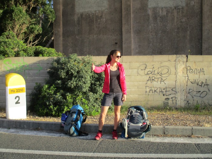 Dass wir den Morgen überlebt haben ist ein Wunder! Gegen die Zivilisation ist die Natur absolut friedvoll. Die Nacht im Gestrüpp, umgeben von Moskitos, Ziegen und möglicherweise Schlangen war harmlos im Gegensatz zur Rückfahrt hinunter nach Port de Pollença. Nachdem wir unsere Zeltwiese verlassen hatten wieder zur Straße aufgestiegen waren, wurde uns rasch klar, dass wir hier weit und breit die einzigen Seelen waren. Kaum ein Tourist würde sich um 7 Uhr früh aus seinem Hotelbett quälen, um statt der weichen Federn die harten Steine der Halbinsel zu betrachten. Wir liefen los, vor uns lagen gut 13km Asphalt, ein schmales Band Straße neben dem es für keinen Fußweg mehr gereicht hatte. Wir lauschten vor jeder Kurve, hoffnungsvoll, auf das Rauschen eines Motors, hörten lange nur den Wind. Dann kam die Psychotante… Eine Deutsche Mitvierzigerin, die mit diesem morgendlichen Trip ihrer penetranten Mutter zu entfliehen versuchte. Wir stiegen mit Englisch ein, aber nach dem ersten ‚th‘ war klar, auf welcher Sprache wir fortfahren konnten. Immerhin, sie hatte angehalten. Wir waren nicht wählerisch in Anbetracht der Alternative des Laufens. Als sie äußerte, dass sie lange nicht Auto gefahren war, bot ich ihr höflich, aber mit Nachdruck, mehrmals, an, das Steuer zu übernehmen. Sie schlug zu unserem Bedauern das Angebot aus und nahm die nächste Haarnadelkurve, schlingernd, auf der Gegenspur. Hoch konzentriert, sie verkrampft hinter dem Lenkrad, wir verkrampft in unseren Sitzen. Sie hätte Kreislauf, heute früh noch nichts gegessen, auch kein Kaffee, ob wir etwas zu essen hätten? Ronja und ich blicken uns an, ‚Hallo? Wir sind Backpacker…siehst du unsere Rucksäcke, wir haben kaum was dabei‘, Ronja bot dennoch aus reiner Menschlichkeit ihre Banane an, schließlich saßen wir in einem Boot. Auto. Sie würde nur ein Stück nehmen, sagte sie. Ronja, jetzt empört über so viel Dreistigkeit, todesmutig kühn, ‚also für ein Stück mach‘ ich jetzt nicht die ganze Banane auf‘. Ich hatte noch einen Müsliriegel, kramte diesen aus meinem Essenssack und trauere im Stillen um den unnötigen Verlust der Nahrung. Der Höllenritt nahm sein Ende in einer Seitenstraße Port de Pollenças, nachdem wir noch Zeuge ihrer Einparkkünste werden durften. Schnell weg hier! Als wir sie später im Supermarkt wiedersahen lief sie mit irrem Blick an uns vorbei. Echt, die Frau war nicht ganz dicht.