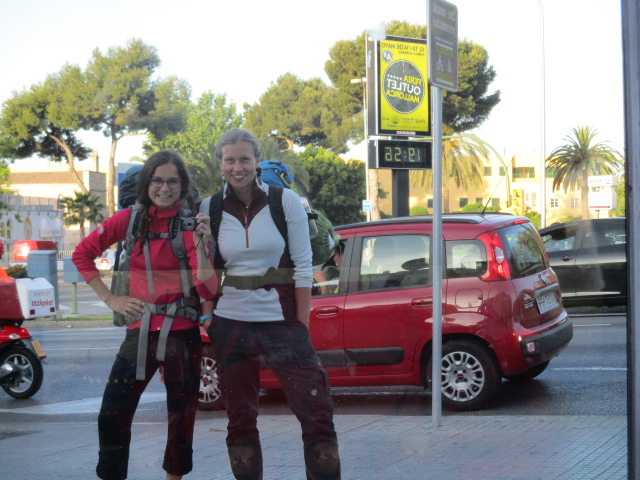 Palma stinkt! Mir nur ein bisschen, Ronja dafür sehr. Aber insgesamt erleiden wir schon einen ziemlichen Schock. Nach vier Tagen Naturerlebnis pur, Nächten im Wald und Duschen am Strand, erscheint uns die Hauptstadt Mallorcas wie der reinste Moloch. Der Stadtstrand, den wir hoffnungsvoll aufsuchen, ist grausam. Dahinter die vierspurige Straße, ist das Seenebel oder Smog, wir sind uns unsicher. Da hilft nur eine Bar. Wir pilgern weiter und finden in einem Estrella Damm. Der Nachmittag geht über in den frühen Abend. Wir müssen heute noch etwas durchhalten. Der Plan ist auf dem Flughafen zu nächtigen, da der Flieger schon morgen früh um sieben geht. Am besten hält man durch mit Essen. Wir suchen uns im Viertel Santa Catalina eine nette Tapasbar und schmausen bis es dunkel ist. Dann fährt der Bus und bringt uns an den Aeropuerto. Und zu unser wohl ungemütlichsten Nacht auf der Bank eines geschlossenen Foodcourts. Jeder Wald mit Getier wäre mir lieber gewesen als die brummenden Geräte, der piepsende Putzwagen und die schlurfenden Koffer. Trotzdem bleibt ein philosophischer Rest. Wir sind in transit. Kurz vor der Rückkehr in den Alltag nocheinmal zwischen den Welten, der Flughafen als Nichtort nährt in uns das Gefühl von Unkonventionalität. Die Idee von Abenteuer und Alternativen. Der nächste Mai wird kommen. Adios Mallorca, du Schöne!