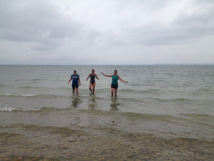 Wir sind eine Schicksalsgemeinschaft, die Banane und ich. Sie fürchtet erdrückt oder gegessen zu werden, dabei will ich mich nur an ihr festhalten. Sie ins Ziel tragen. Mein Magen würde sie ohnehin nach diesem 1,5km Chiemseehochseeabenteuer und den feuchtwarmen 40 hügeligen Radkilometern nicht vertragen. Die Banane, meine Begleiterin auf den letzten neun Kilometern. Sie wurde mir von einem freiwilligen Helfer am Verpflegungsstand gereicht. Nach dem ersten verflucht geraden Kilometer stand er da und hielt sie mir vor die Nase. Was konnte ich anderes tun als sie zu greifen? Sie war perfekt, eine wahre Paradiesfeige, dabei keine ganze. Man schnibbelt Bananen bei Wettkämpfen in 3-4 Stücke, Häppchen, mundgerecht für die Sportler. Ich hatte ein Endstück erwischt. Noch geschlossen auf der einen Seite, mit dem Staudenpinöpel dran. So wie Affen sie schälen, mit dem Pinöpel nach unten. Auf der anderen Seite offen, glatt abgeschnitten, mit Blick auf das gelbliche Fruchtfleisch. Bananen gehören, wer hätte das gedacht, als Früchte zu den Beeren und werden im botanischen Fachjargon Finger genannt. Ich hatte einen abgeschnittenen Finger, aber einen der sich ganz ausgezeichnet anfassen lies. Ich knetete und drückte, während die Kilometer stetig weniger wurden. Am Ende war sie schleimig geworden, nass. Und ein bisschen zu fest gedrückt hatte ich wohl auch. Sie fand ihr Ende in der schwarzen Mülltonne am Zieleinlauf. Hinter der Ziellinie wohlgemerkt. Das Rennen hatten wir zusammen gemeistert. Schicksalsgemeinschaft. Die Banane und ich. Beim Chiemsee Triathlon 2017.