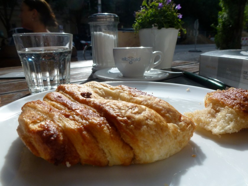 Ein ganz besonderes Kleinod liegt in der Sredzkistraße, die zwar unglaublich schwer auszusprechen, dafür aber ganz schnell per pedes zu erreichen ist. Das Café ‚elbspeicher‘ ist ein kleines Stück Hamburg in Berlin. Durch und durch nordisch, mit Möbeln aus splittrigem alten, Holz, blau-weißen Polstern, Kaffeebohnen aus der Elbgold Kaffeerösterei in der Hamburger Speicherstadt und vor allem gibt es Franzbrötchen. Klitschig und butterweich. Ein Gedicht. Das will was heißen, denn die Franzbrötchenqualität ist in der Regel eine kritische Sache. Das war Liebe auf den ersten Blick. Und den ersten Geschmack. Die ewigen Currywurstrivalen Hamburg und Berlin können anscheinend doch ganz gut harmonieren.