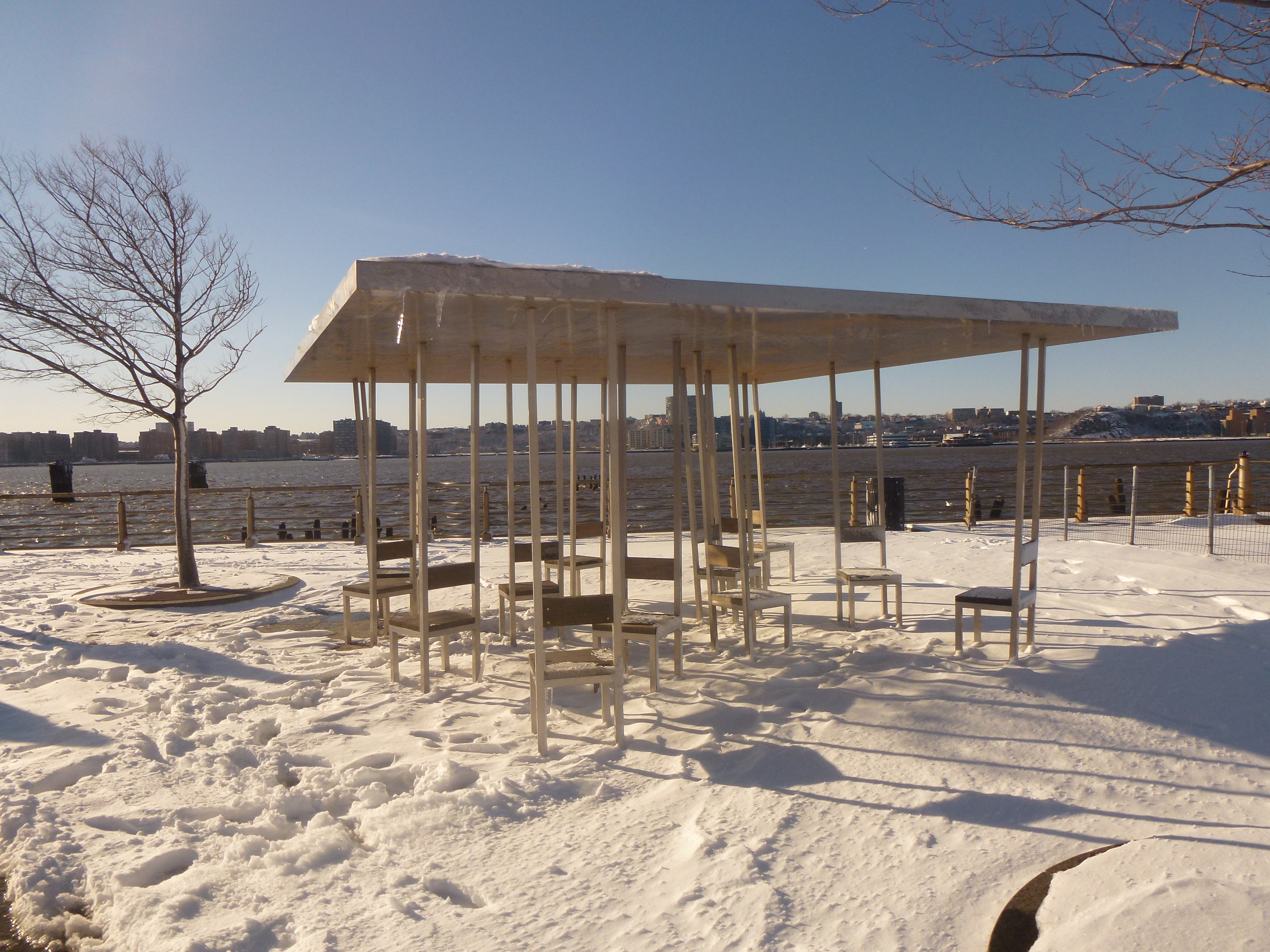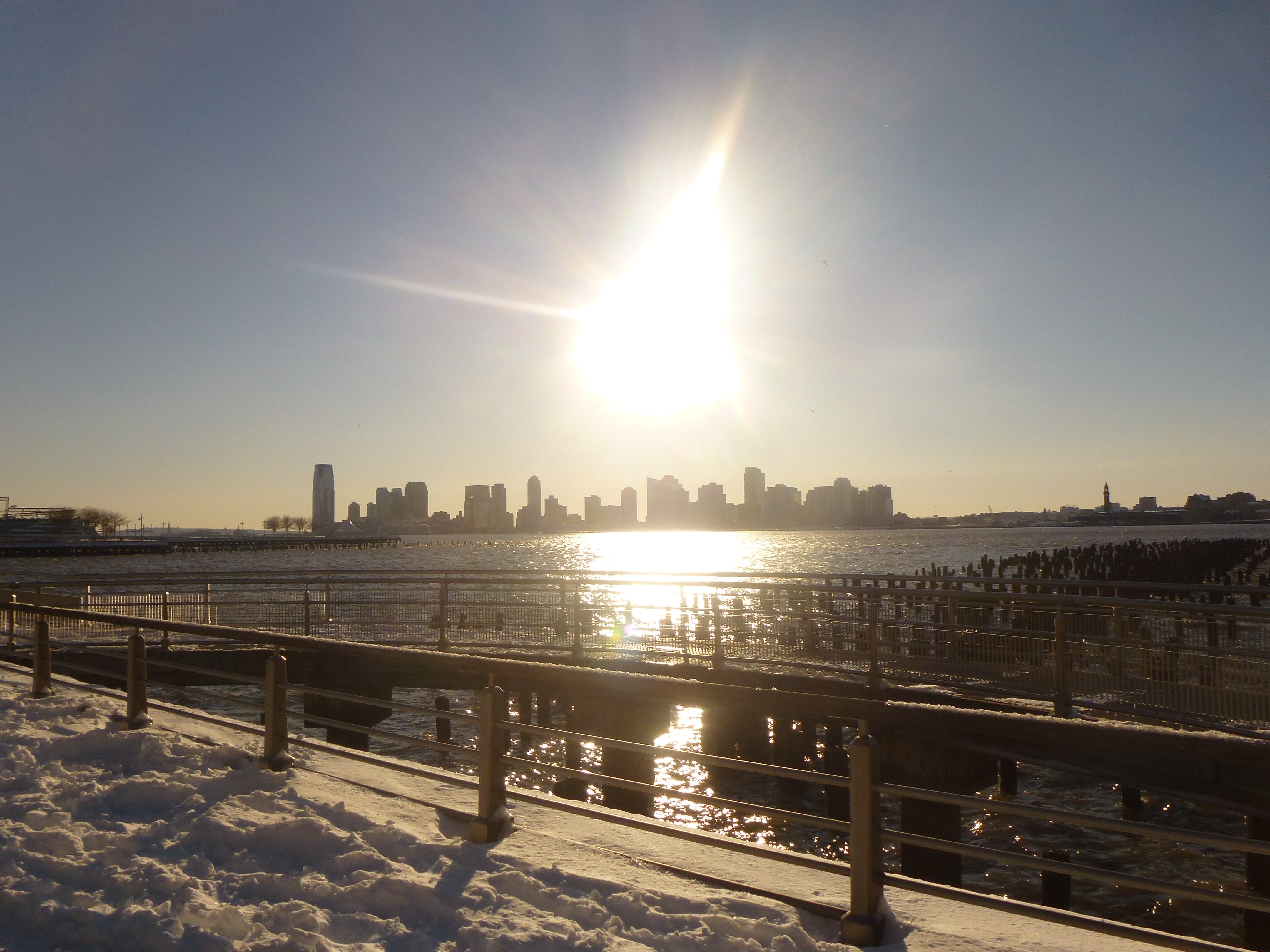 Letzte Nacht hat der Wind gewütet und jede Menge Schnee in den streets und avenues verteilt. Schon beachtlich was da runtergekommen ist. Nach Notstand hat sich das alles aber nicht angefühlt und heute morgen schien malerisch, entgegen aller Erwartungen, eine wunderbare Wintersonne von einem klaren blauen Himmel. Perfekt für einen WInterspaziergang. Das hat sich so ungefähr die gesamte Bevölkerung New Yorks gedacht und direkt mal den Central Park mit erhobenen Schlitten und Langlaufskiern erobert. Da bot sich wieder das Ufer des Hudson an. Inzwischen habe ich das Gefühl, dass der Park dort noch ein Geheimtipp ist.