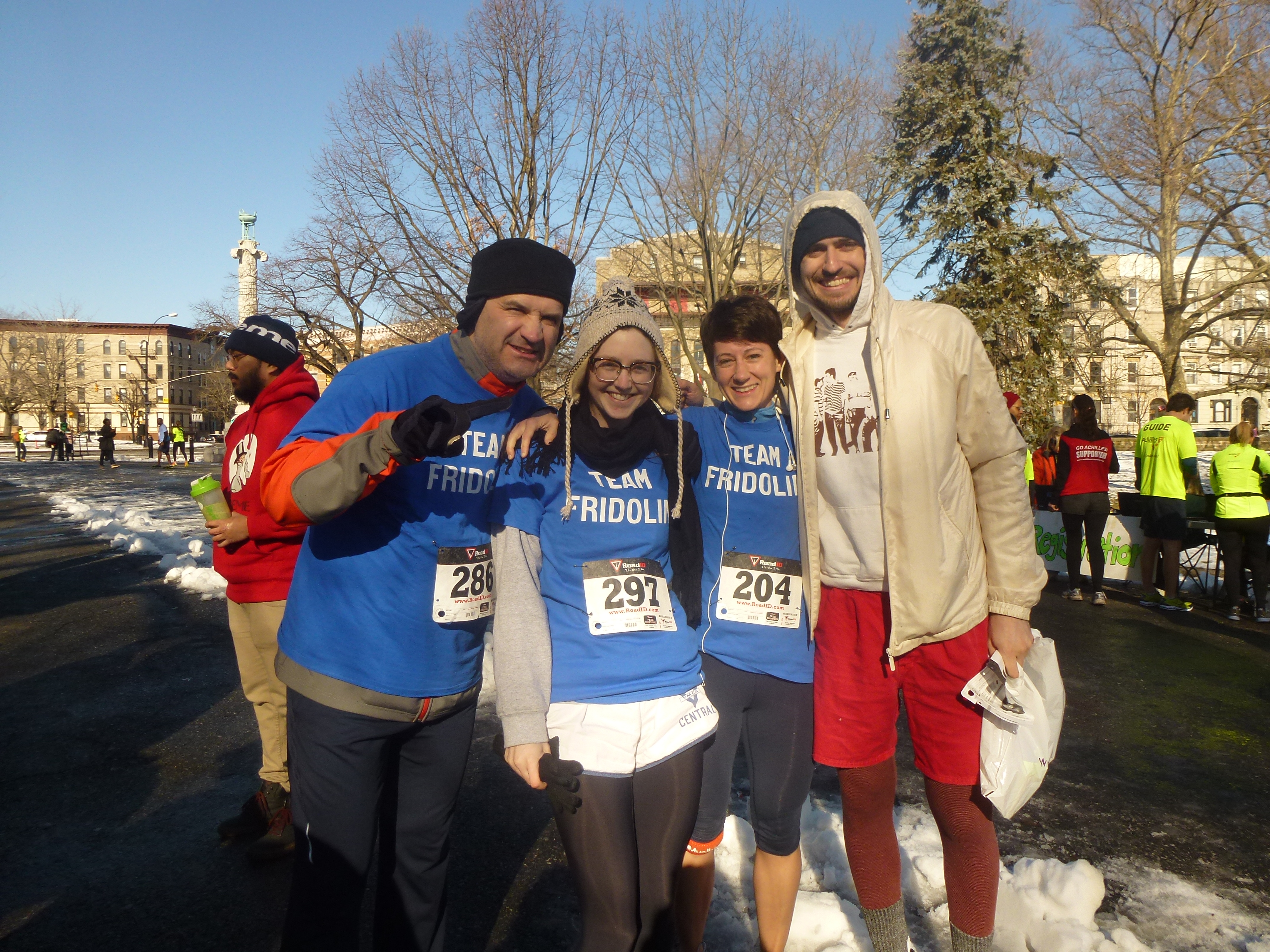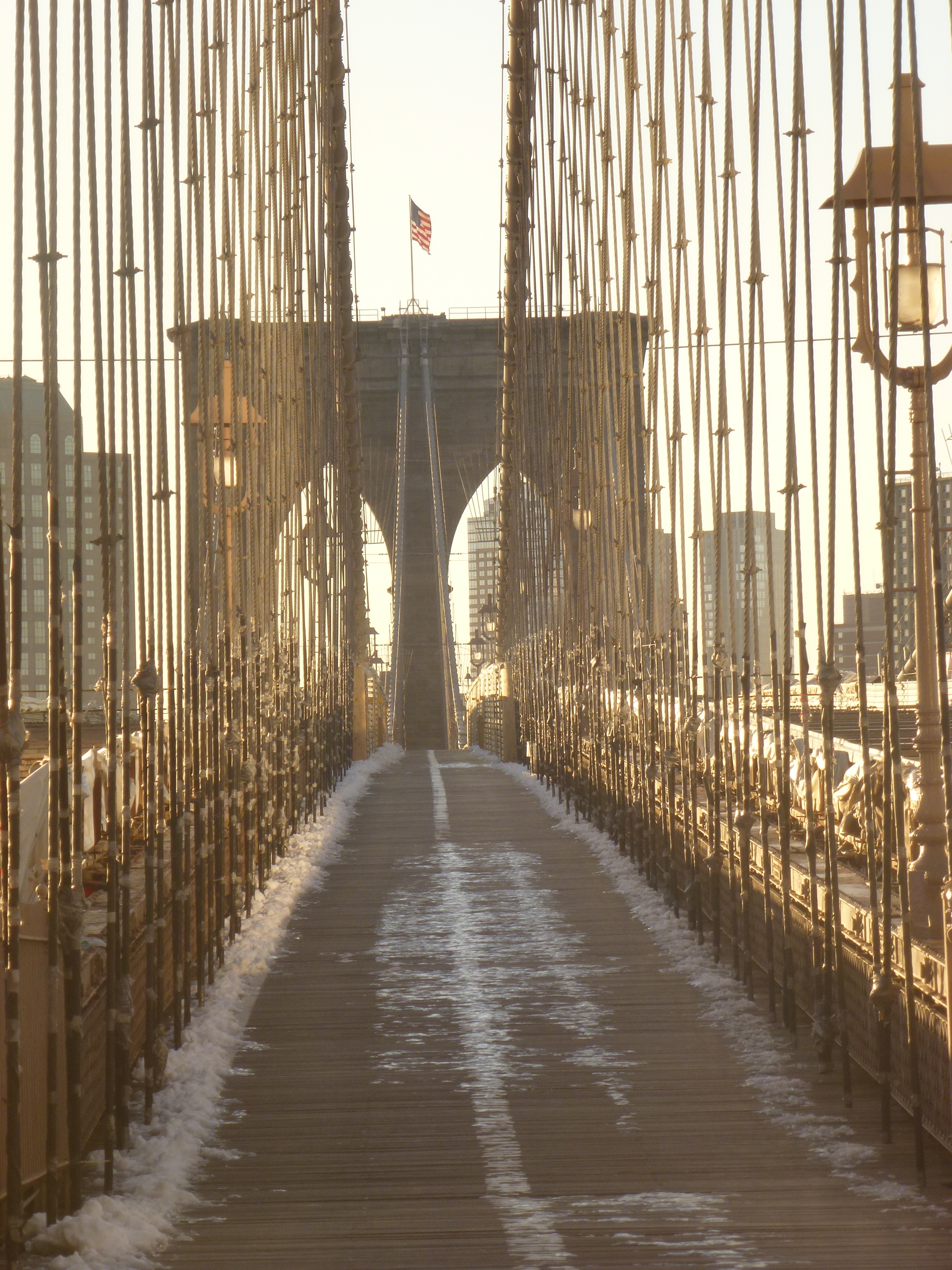 Aber tatsächlich, um 6:15 Uhr heute morgen fiel kein Schnee, es ging die Sonne. Auf! Und ich lief los. Auf der Brooklyn Bridge kitschiger Weise der Sonne entgegen. So ganz ohne Touristenströme zu dieser frühen Stunde. Die Flatbush Avenue hinunter, durch Brooklyn bis zum Prospect Park. Startschuss für den Lauf war um neun, ein 5k‘ race einmal rund um den Park. Mit dem Team Fridolin und Jeff. Vorbei an verschneiten Wiesen, im Einklang mit weißen Atemwolken von der Morgenfrische. Später dann eher Dampfwolken, weil die Sonne höher und der Kurs (an)gestiegen war. Nach einer guten halben Stunde war schon wieder alles passé und wir waren bereit für Frühstück, self-made bei Grace. Zünftig amerikanisch mit to-go Kaffee, Omlette, bacon und doughnuts. Inklusive Musik vom Plattenspieler und in der Gesellschaft von Katze Cleopatra und Hund Scarlett. Ein nicht ganz gewöhnlicher Morgen in Brooklyn, eine ungewöhnlich schöne Art den Tag zu beginnen. Um den Kreis zu schließen setzten Thomas und Hannah mich vor einer Brücke auch wieder ab, diesmal die Manhattan Bridge. Die bietet auch am Tag, wenn die Brooklyn Bridge schon lange von sonnenhungrigen Touristenströmen eingenommen ist, noch jede Menge Platz zum Laufen. Downtown Manhattan queren, durch Menschenmengen in Chinatown, hinüber an den Hudson. Und dann hoch, gen Norden, zurück in die Upper West Side. Und dann erstmal duschen.