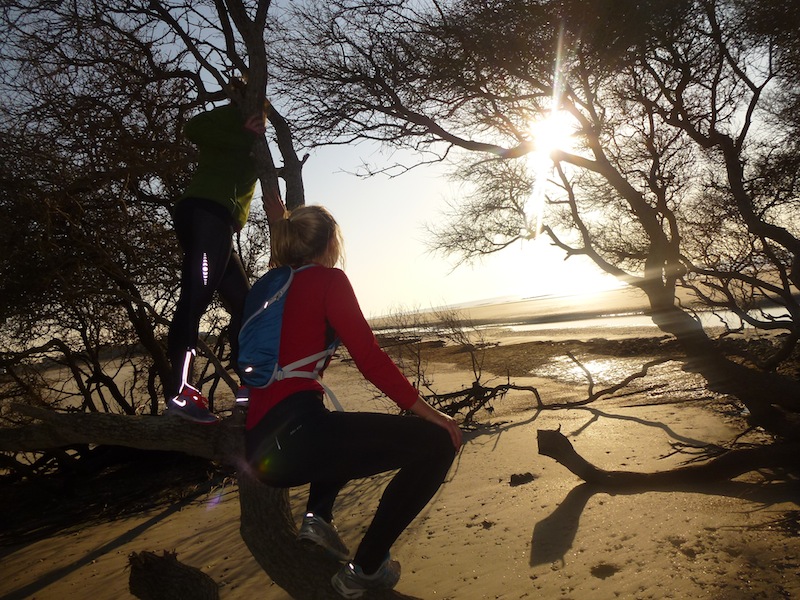 Wofür braucht man eigentlich Hotelbetten? Morgens im Auto aufzuwachen bringt einen dazu, ziemlich effektiv im Aufstehen zu werden. Man erwacht mit dem ersten Licht, zieht die obersten Klamotten aus dem Rucksack, zieht sich an, dann wird noch alles umgeklappt und los gehts. Demnach fanden wir uns heute morgen um 7 Uhr schon auf dem Weg zum Folly Beach, einem Strand kurz hinter Charleston, South Carolina. Was uns da erwartete, das könnt ihr euch auf den Fotos anschauen. Schon wieder so ein absolut lebenswertes Fleckchen Erde. Während unseres Strandlaufs begegnet uns kaum eine Menschenseele. Kurzer sehnsüchtiger Surfcheck: Es brandet zu schwach, aber die Wellen brechen perfekt. Absolut definiert und sie laufen und laufen, für einen Beachbreak ziemlich gut. Noch steht kein Wind auf dem Wasser. Magische Morgenstunden. Nach dem Lauf spielen wir Yogis, verbiegen und dehnen uns am Strand. Alles glänzt und wir strahlen mit dem Morgenlicht im Einklang, OM! Die Strandduschen am öffentlichen Parkplatz sind saukalt, aber die einzige Möglichkeit für zwei Autoreisende mal wieder gut zu riechen. Und danach fühlen wir uns so frisch, so frei und so so wach.