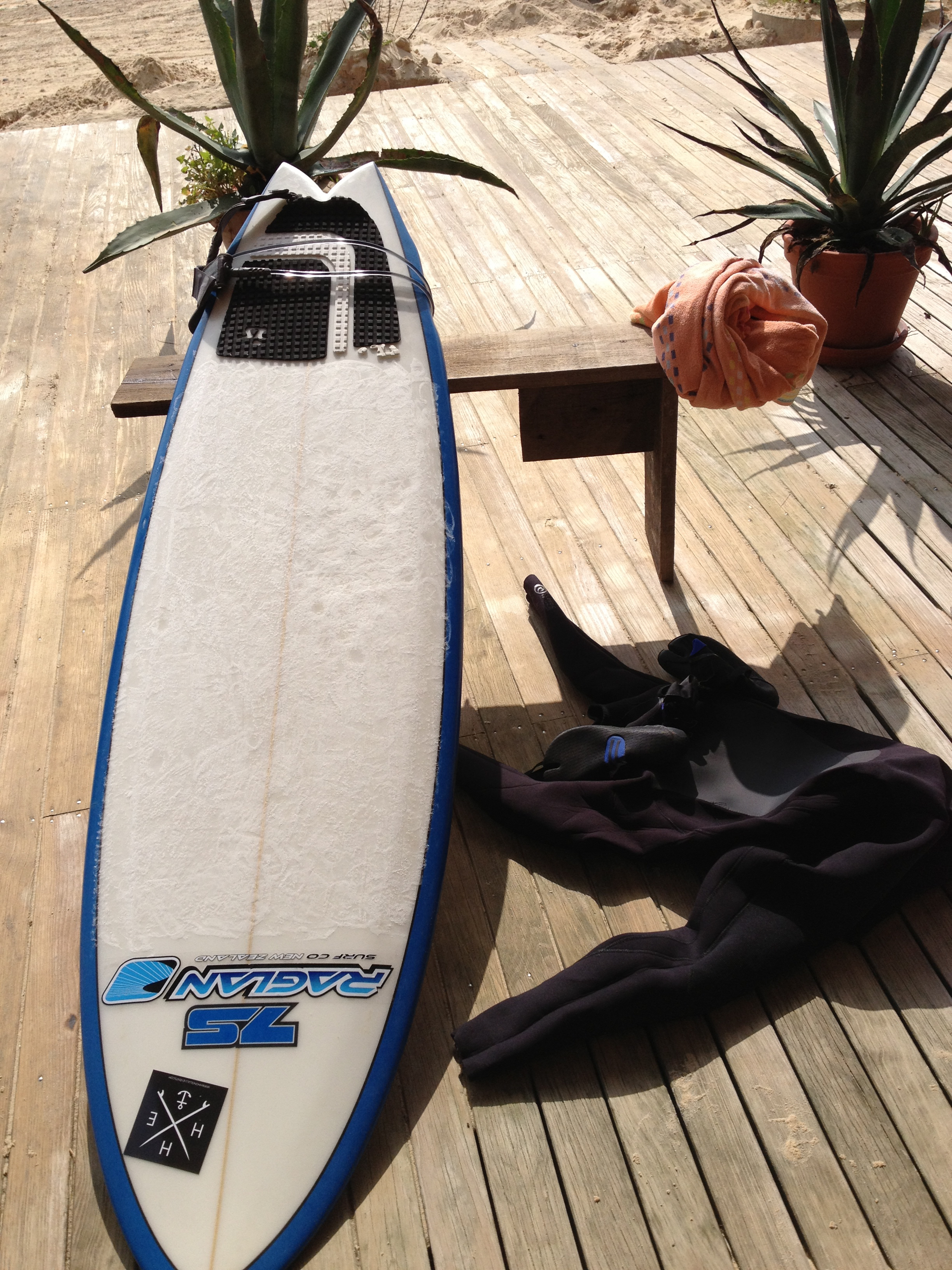 Und natürlich mussten wir gleich erste Wasserkontakte knüpfen. 13°C Wassertemperatur. Wie dankbar ich für mein langärmliges Lycra und die Booties bin. Und dazu entspannte kleine Wellen, wie man sie sich nach 8 Monaten Brettpause (geht gar nicht!) nur wünschen kann. Und trotzdem melden sich natürlich ganz schnell die Arme. Aber ich bin froh, dass Surfen etwas vom Radfahren hat und man das Boardgefühl irgendwie nicht verliert. Die Euphorie spielt eh mit. Die ersten Schritte ins Wasser, ungeduldig gegen das hereinströmende Wasser ankämpfen und dann findet der Bauch das Brett, der Körper die Mitte. Und der Geist sowieso. Man ist im Element. Wasser. Paddelt dahin, über die Wellenkämme, mit regelmäßigen ruhigen Armzügen. Bis ins line-up. Willkommen zurück.