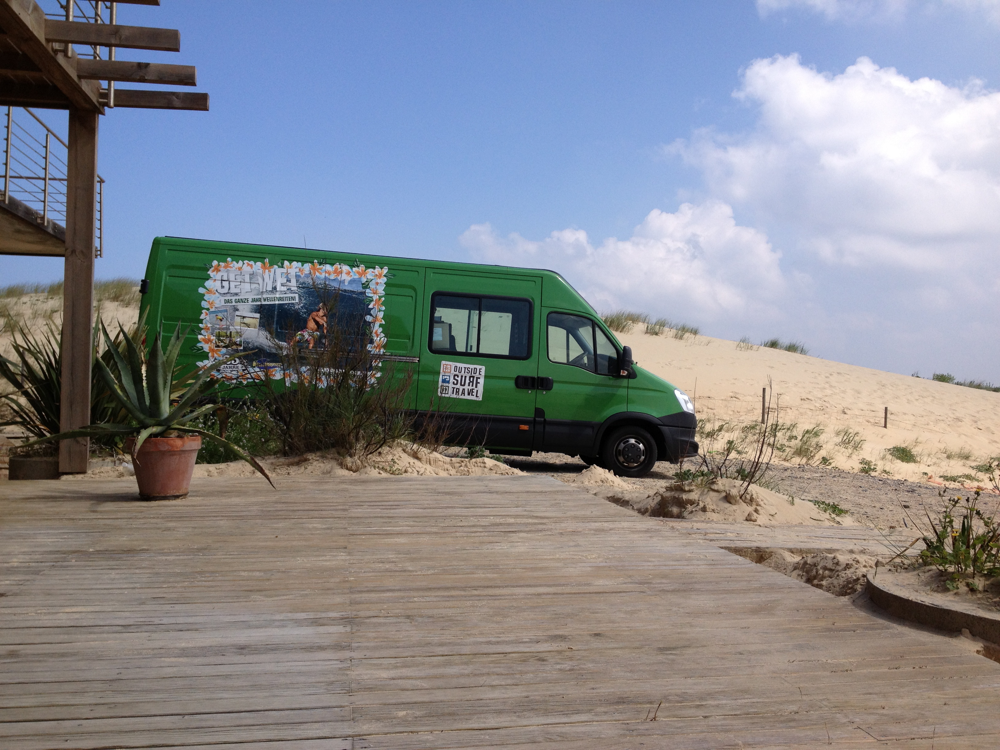 Elementare Teilchen. Sandkörner. Wasserpartikel. Elementar wichtig. Berauscht und beschienen, von Wellen und Sonne. Schon völlig verstrahlt. Liege ich auf meinem Boardbag, den Kopf im Schatten. Meine Nase ist schon ganz rot. Könnte aber auch noch von der Erkältung kommen. Der Schlaf der letzten Nacht geht mir auf jeden Fall ab. Der 20 Jahre alte Opel Omega hat uns von Hamburg die 1800km nach Frankreich gebracht, über Nacht. Einmal kurz Reifenwechsel bei Frankfurt, das war allerdings geplant. Heute morgen vor allem Nebel, noch sehen wir nirgens die ersehnten Pinienwälder. Um 9 Uhr Ankunft in Contis Plage, Südfrankreich. Atlantikküste. Und die Sonne scheint. Fast windstill. On est arrivée!