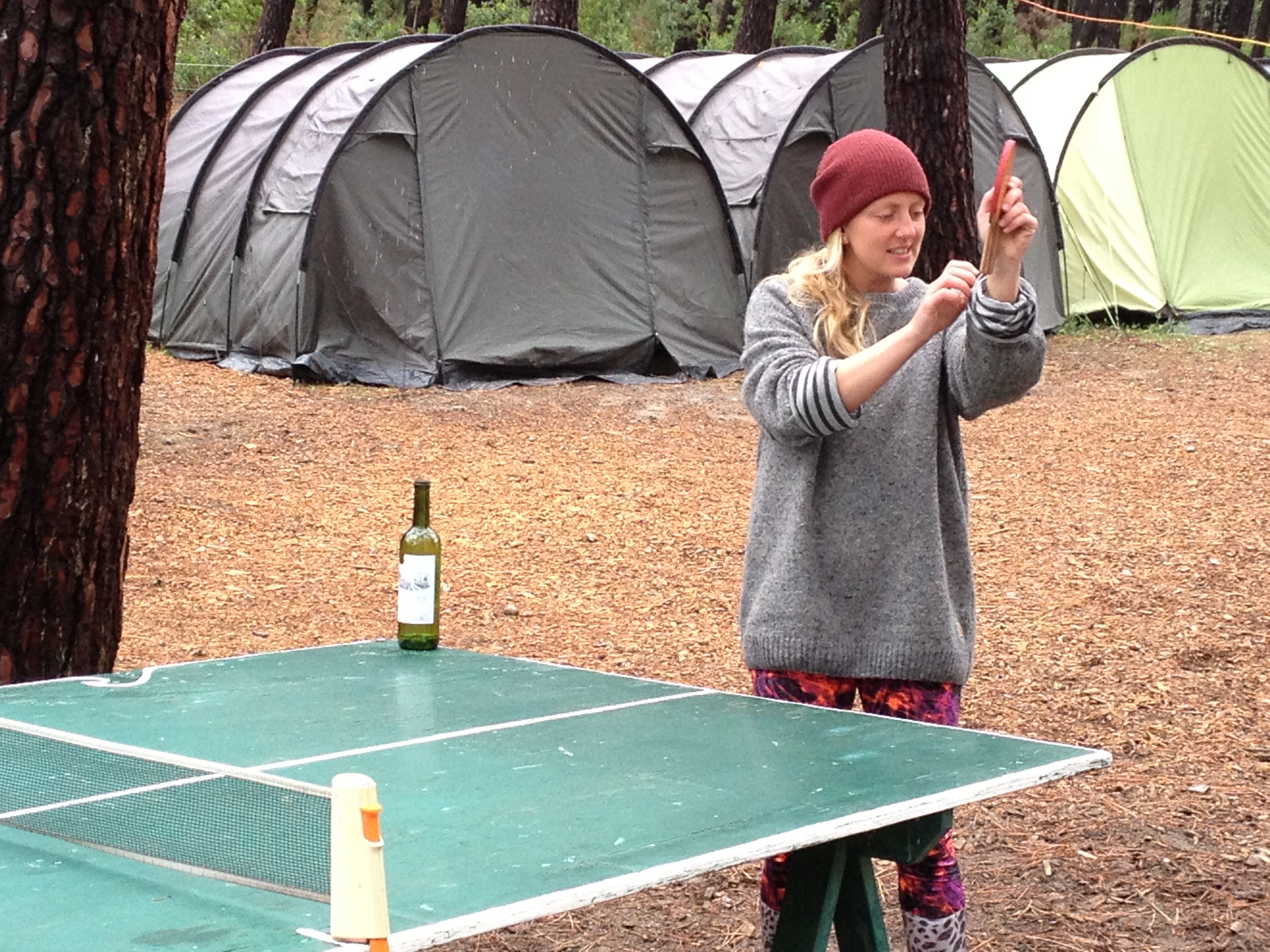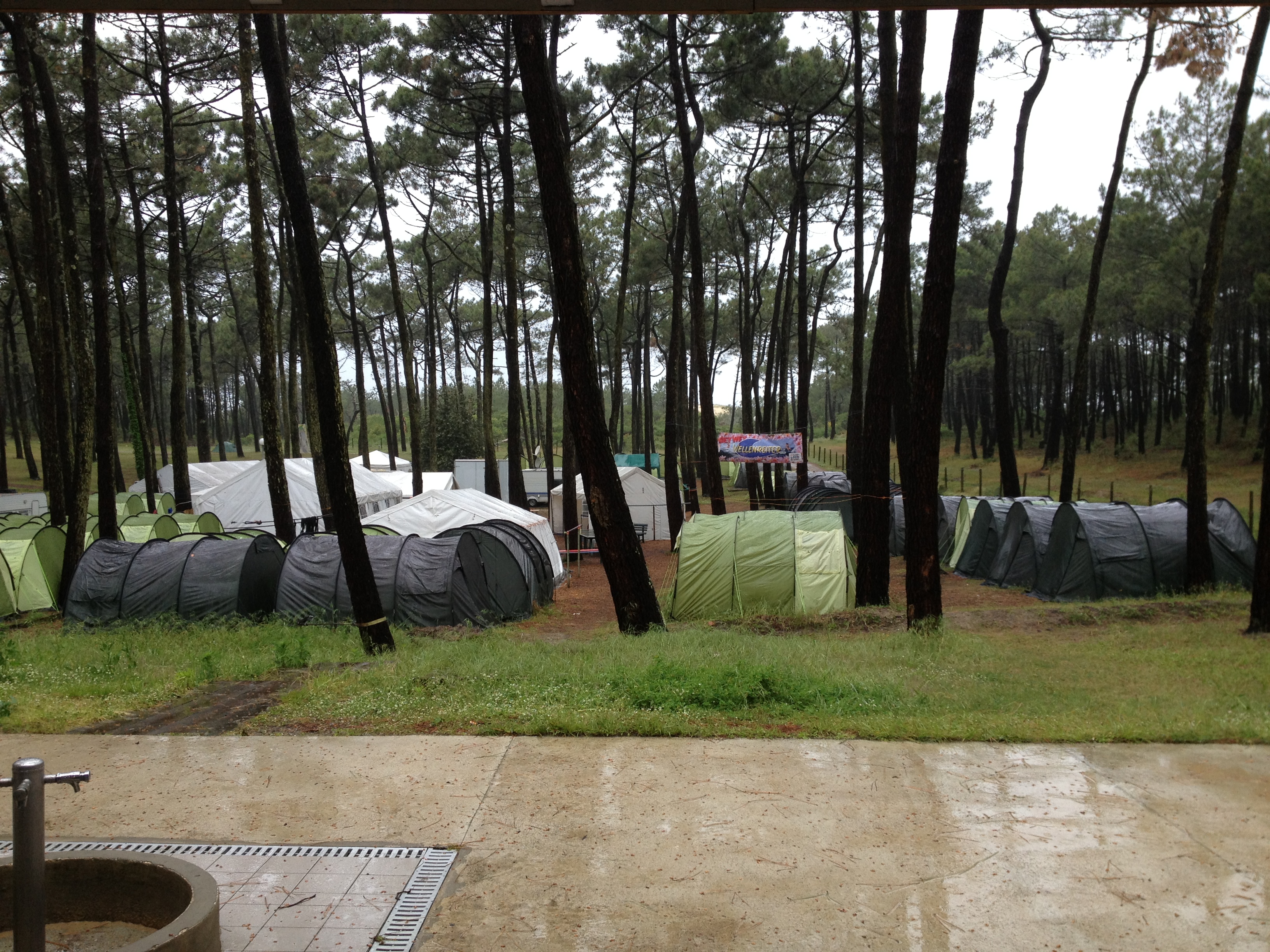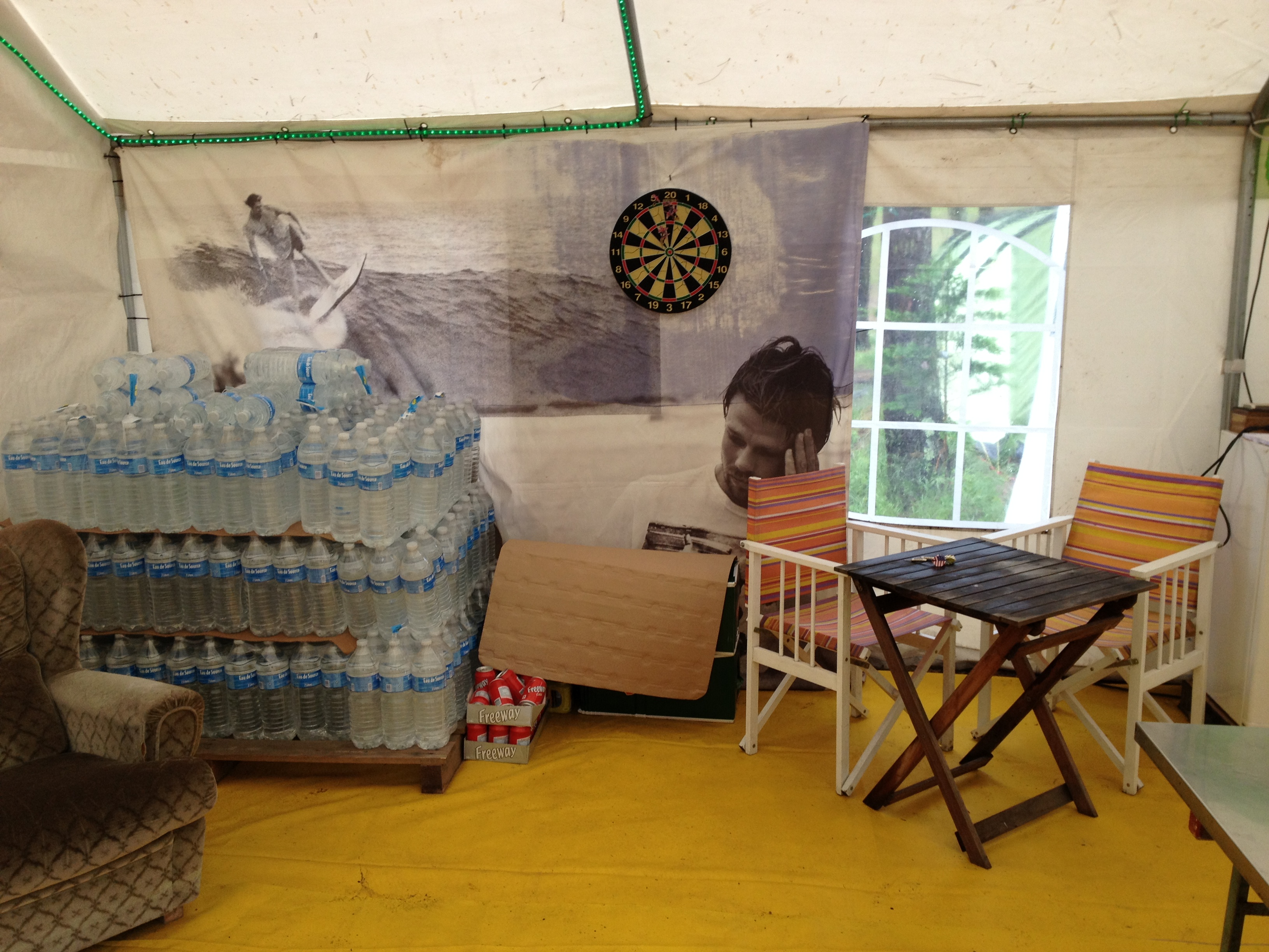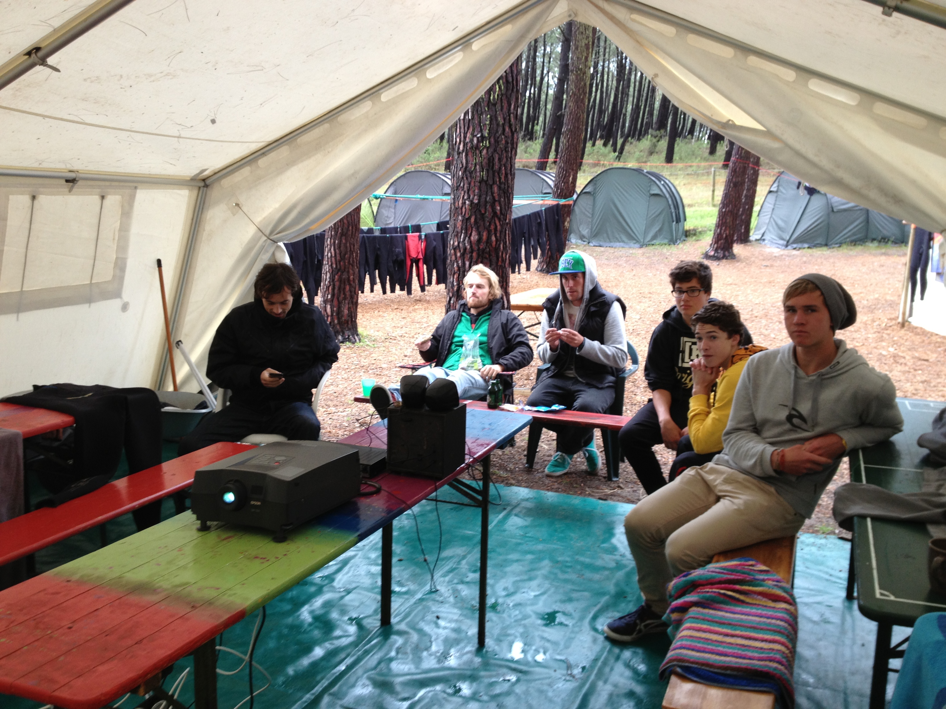 Es prasselt auf mein Zeltdach als ich aufwache. Es prasselt lauter als ich mich zum Mittagsschlaf aufs Ohr haue. Es tröpfelt noch immer als ich mich am Abend in meinen Schlafsack verkrieche. Heilige Wildsau, bald haben wir mehr Wasser vor als hinter der Düne! Wolldecken- und Strümpfe, Regenjacken und Mützen gelten derweil noch immer als obligatorisches Accessoire, es wird begonnen mit Heizlüftern für Zelte zu handeln. Ein 3’2er Neo gilt als Herausforderung, selbst die harten Kerle greifen meist auf dickeres Neopren zurück. Allerdings bauen wir alle auch gepflegt unser „Biopren“ auf bzw. an, denn die Verweildauer im Küchenzelt ist höher als die im Wasser. Soviel zum athletisch gebräunten Surferbody. Adé, du Idee des gadligen Sommerkörpers.