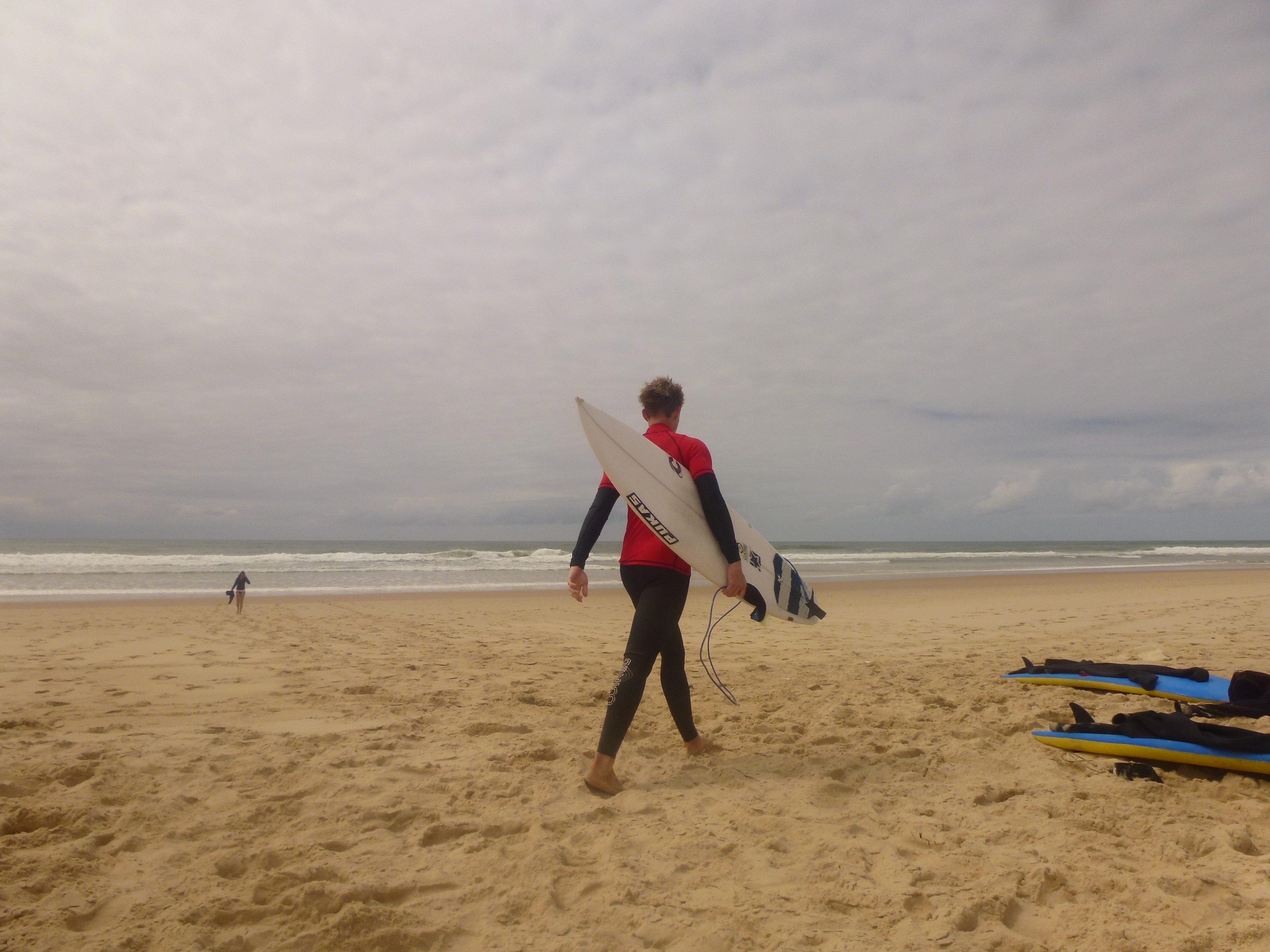Aber wir wollen optimistisch bleiben. Um frohes Gemüt bemüht. Pfingsten naht, es tauchen mehr und mehr bekannte Gesichter auf und endlich werden wieder Sprüche geklopft. Eine erste Stippvisite, nur ein oder zwei Wochen, bevor man im Sommer für eine längere Zeit wiederkommt. Die Nase Atlantik und Pinienwald schnuppern lassen. Und manchmal gehen wir doch noch surfen. Freitag Abend hatte sich der Wellenwahnsinn etwas beruhigt, was in einem spontanen nachabendessenlichen Teamsurf endete. Schweigendes Paddeln, neoschwarze Oberkörper zwischen Wellenkämmen auf und ab, auf und ab hüpfend im line-up. Stille. Bis auf das Rauschen der brechenden Wellen, die Explosion wenn Wasser auf Wasser trifft. Bei einem tieforangenen Sonnenuntergang, unter den Augen einer anmutig marschierenden Karawane von Wolkenelephanten am Horizont blieben wir im Wasser bis es zu dunkel wurde. Nass und fröstelnd, aber glücklich wanderten wir über die Düne zurück ins Camp. Der Sand kalt wie Schnee. Was für ein Glück, dass es die heiße Neodusche gibt.