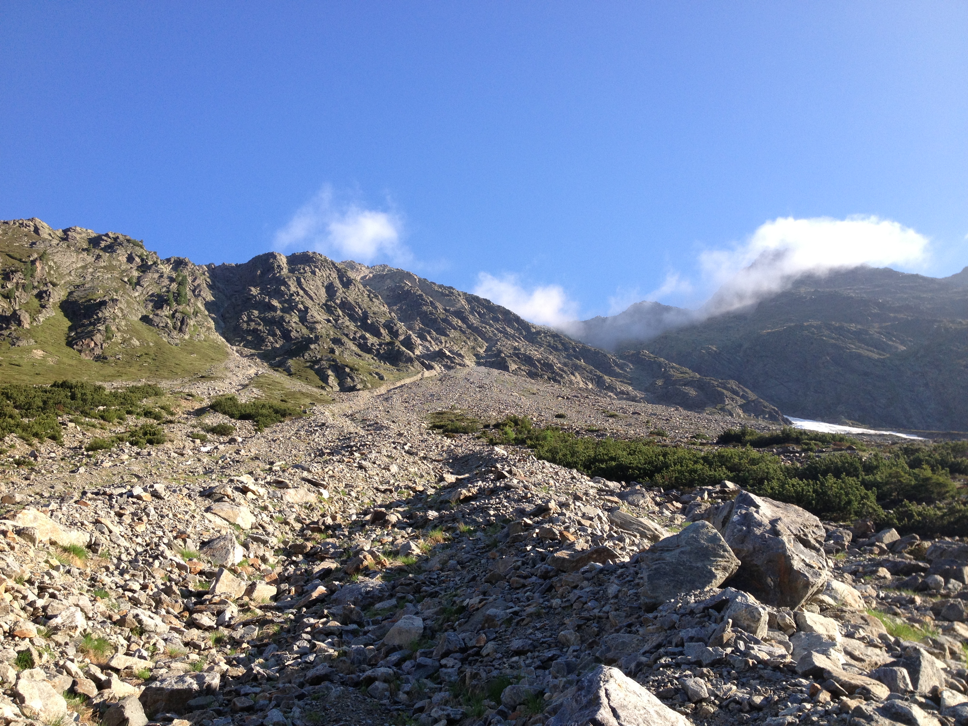 Nachdem uns das Mittagsgeschäft heute ganz schön ins Schwitzen gebracht hat, wir von 12 bis 14 Uhr einen Kaiserschmarrn nach dem anderen gerührt, Eier gebraten und Weißbiere ausgeschenkt haben, ist am Nachmittag wieder Ruhe eingekehrt. Nebel zieht auf, das Wetter soll wieder schlechter werden. Die Tagesbesucher sind abgestiegen, nur zwei Übernachtungsgäste. Und so konnte ich mich für ein paar Stunden vom Acker machen. Mit dem Laptop ins Tal, um nach unglaublichen 6 Tagens Abstinenz wieder mal dem Internet Gesellschaft zu leisten. WLAN auf der Hütte funktioniert nämlich noch nicht, noch nicht! Natürlich gibt es wichtige Dinge zu erledigen, oh ja. Aber drei Stunden Kontakt zur Außenwelt müssen genügen, dann muss ich wieder hinaufsteigen in den Heidiroman. Um noch vor der Dunkelheit wieder Schutz in der Hütte zu finden. Wem nach Berg ist, der möge mich doch im Juli heimsuchen! Also dann, wir sehen uns auf 2400m.