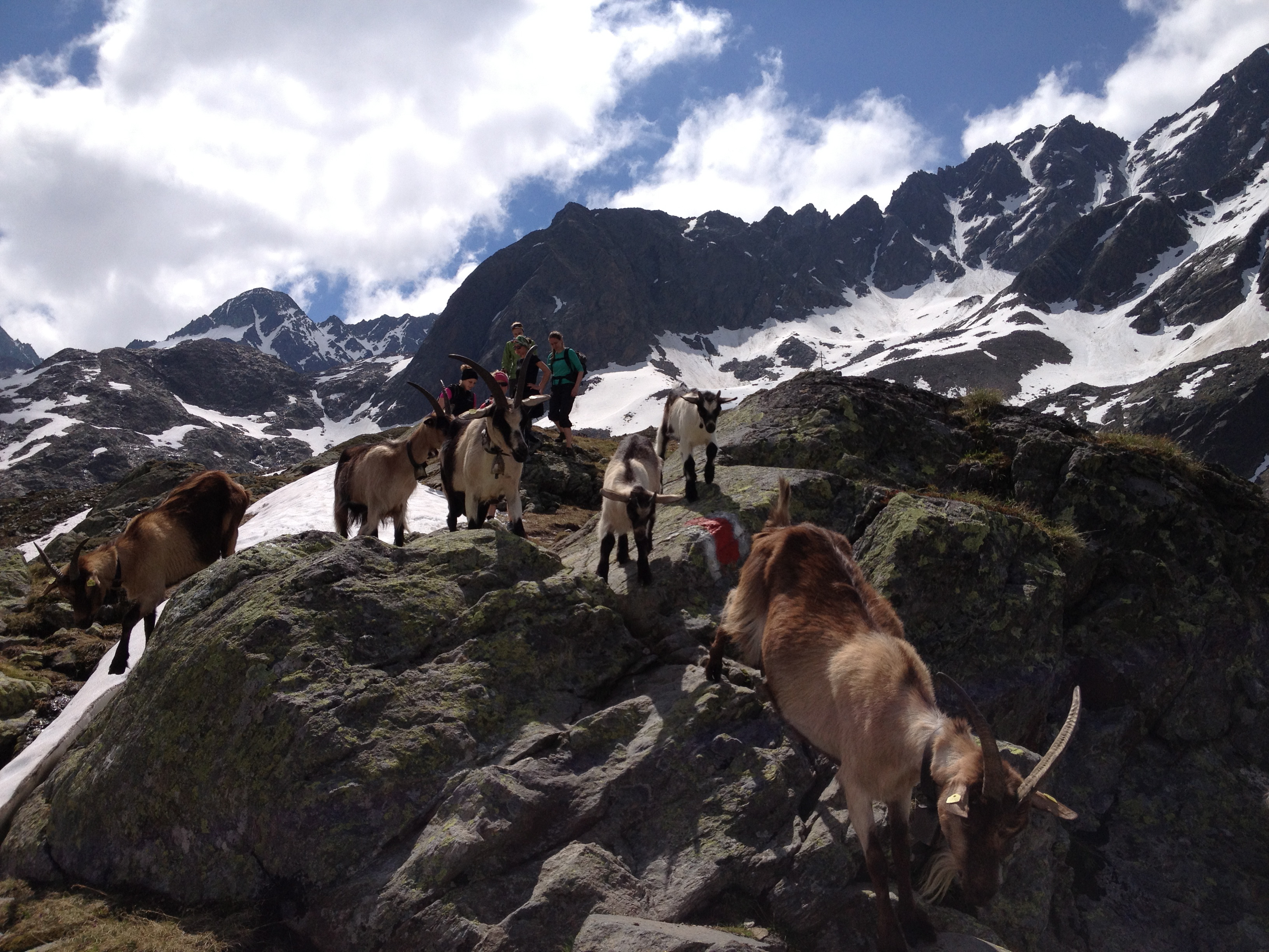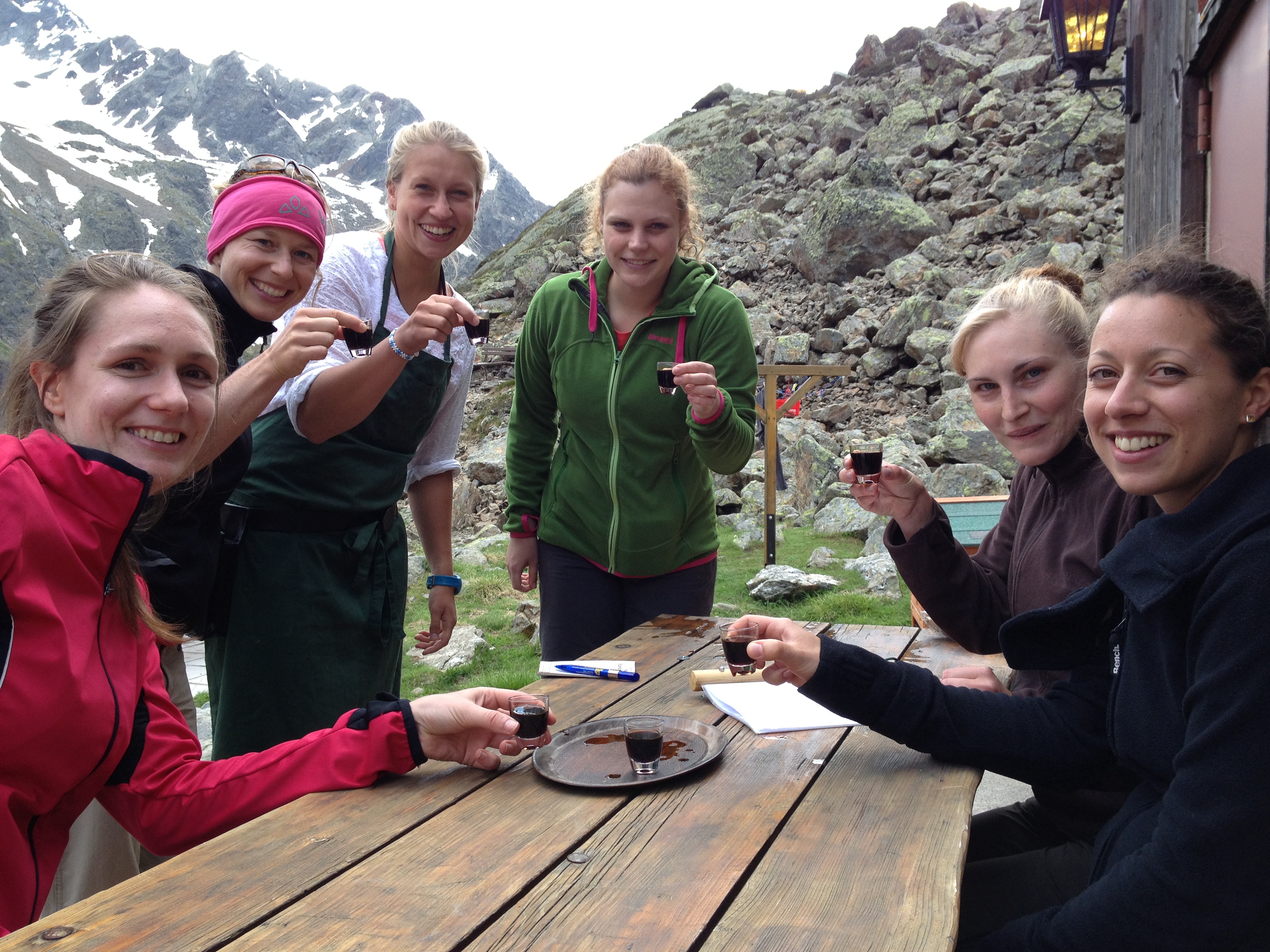 Wir haben noch keine schriftliche Statistik aufgesetzt, um unsere Beobachtungen zu überprüfen. Aber Statistiken braucht eigentlich kein Mensch, unsere Erfahrung zeigt zuverlässig: Taucht die Herde Ziegen von Michels Bruder, die hier oben seit einigen Wochen herumspringt, vor der Hütte auf, dann steigt schlagartig der Umsatz von Milch und Buttermilch. Das ist äußerst faszinierend. Mich persönlich würden keine zehn Kühe dazu bringen, ein 0,5 l Glas kalte (Butter)Milch zu bestellen. Aber Milch scheint sich in das bergromantische Bild vieler Wanderer eingefügt zu haben wie das Fischbrötchen, das sich im „wahren“ Hamburgerlebnis aalt. Nur mit Milch ist die Alm wirklich authentisch. Und nur hier oben schmeckt sie frisch und rein, der Geschmack heiler Welt liegt ihnen auf der Zunge. Da interessiert es keinen, dass auch unsere Milch aus Tetrapaks gegossen und aus irgendeiner Molkerei aus dem Tal geliefert wird. Das erste Mal, als einer doch fragte, ob es sich denn um frische Milch handle und ich ehrlich verneinte und daraufhin seine Enttäuschung und alpenromantische Desillusion zu spüren bekam („Nee, dann trink‘ ich ne Cola.“), beschloss ich in Zukunft die armen Touristen zu verschonen. Und wenn doch mal wieder einer fragt, dann nicke ich heidihaft harmonisch und bekräftige, dass es sich um lokale Erzeugnisse handle. Das hat des Hüttenwirts Vater auch immer schon getan, den Leuten was vom Melken erzählt. Stimmt ja irgendwie auch, nur hängen wir selbst halt nicht morgens um vier am Euter. Jedenfalls trinken die Idyllsuchenden dann seelig ihr weißes Naturgold und spüren den Berg von außen und von innen. Alle glücklich, was will man mehr. Und was alpine österreichische Klischees angeht darf ich schon gar nicht spotten: Was wären zahlreiche Winter- und Wanderurlaube ohne Almdudler und Kaiserschmarrn gewesen? Auch meine Bergidee war von Heidi und Geißenpeter geprägt, von einer unberührten Ursprünglichkeit reißender Gebirgsflüsse und grüner Almhöhen. Durch die Arbeit hier schaue ich natürlich jetzt hinter die Kulissen und sehe, dass nicht durchgehend Pauschalidylle herrscht. Warum aber Kurzurlauber desillusionieren? Ab und zu braucht doch jeder ein bisschen Romantik. So gilt also weiterhin die Faustregel:
