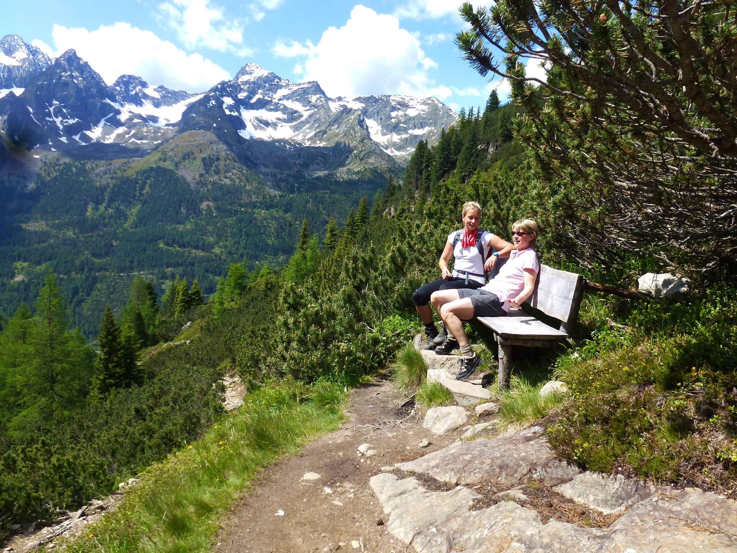 Und dann noch Udo, der siebzigjährige Bayer aus Bad Tölz. Udo ist nun wirklich eigentlich sehr sympathisch und gar nicht so komisch. Ein Eigenbrödler, Chemiker mit einer Liebe zu den Bergen, zum Meer und zur Musik. Der Sohn hat Schlagzeug studiert, die Tochter Harfe. Seit er pensioniert ist geht er ständig auf Wandertour. Davor hat er als alles mögliche gearbeitet, an der Uni, für BASF und so weiter. Davor auch mal für ein Plattenlabel und als Student ist er Lastwagen gefahren. Ich weiß alles, wir sind an meinem freien Tag eine Stunde zusammen abgestiegen…Udo mag ich wirklich recht gerne, außer dass er manchmal zu viel redet. Und wenn er von den friesischen Halligen erzählt, und von Sandkuhlen Picknicks mit Krabben und Weißwein auf Sylt, dann bin ich mit meiner Sehnsucht plötzlich wieder am Meer. Dann klingt das Quietschen der Schaukel nach Möwengeschrei, dann rauscht draußen die See und nicht der Wasserfall.