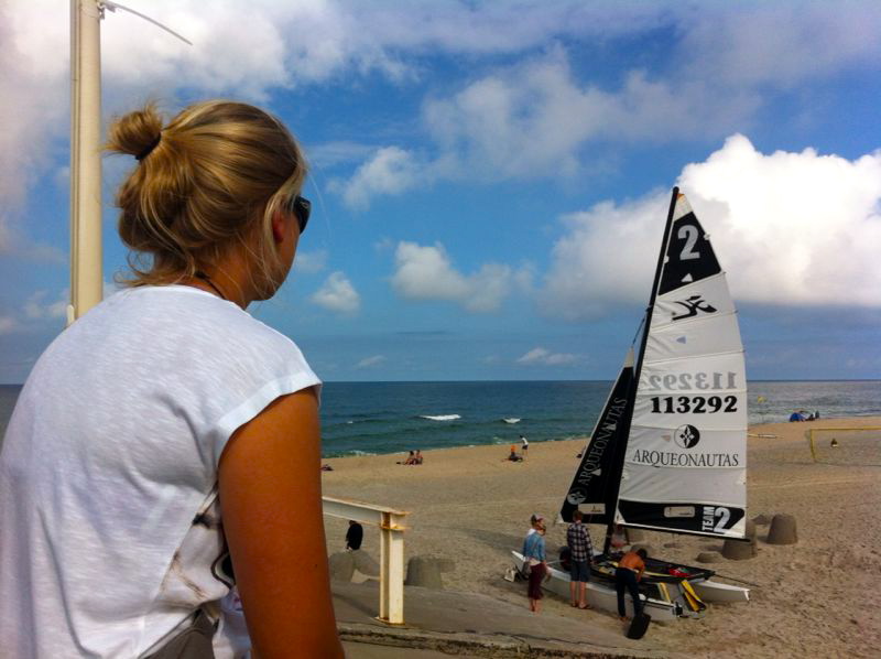 Die vergangene Woche kann sich sehen lassen. Samstag Scharbeutz, Sonntag Sylt, Mittwoch Heiligenhafen, Samstag Sylt. Zweimal Ostsee, zweimal Nordsee. Wie ein Rausch erfasst mich der Norden und lässt die Sehnsucht nach Meer nicht abklingen. Wie gut, dass ich momentan Zeit habe dem nachzugeben und mich von Strand zu Segelboot zu Surfbrett zu hangeln. Und wie gut, dass Linschi gerade in Hamburg und ebenfalls Feuer und Flamme für einen Trip nordwärts ist. Schnupperpuppen-Reunion mit Inselgedanken. So sitzen wir gestern bei strahlendem Sonnenschein im Line-up vor Westerland und fragen uns, warum seit unseres ersten Frankreich Surfs sieben Jahre vergehen mussten, bis wir das erste Mal gemeinsam durch die Sylter Brandung paddeln. Und doch keine Spur der Reue darüber, dass wir für diese Erkenntnis so viel Zeit gebraucht haben. Es gibt ja noch die Zukunft und die soll nasser und sandiger aussehen, high five von Board zu Board. Wir brauchen neue Zeiten wie die alten. Und dann spaddeln wir weiter durch die Wellen und stimmen altbekannte Lieder an. Neben uns zwei 12 jährige Jungs, die abgehen wie Schmitts Katze, der eine auf seinem Norden Fish, der andere schon erkennbar Longboarder, wenn er die Hände hinter dem Rücken faltet während er elegant die Welle entlang gleitet. Schmitts Katze befindet sich am Nachmittag auch unter den Teilnehmern der Sylter Sailing Week, denn der Wind frischt auf und die wir sehen die Boote draußen zwischen weißen Schaumkronen mit einiger Geschwindigkeit um die Bojen jagen. „Schmitts Katze “ gefällt uns als Bootsname. Und außerdem basteln wir weiter an der Hängemattencafé-Idee und überlegen Möglichkeiten, an ein Haus am Meer zu kommen. Windwellen hin oder her, wir kommen jetzt jedenfalls öfter nach Westerland! Nach dem Surf gibt es Kaffee von der Creperie am Meer und Fischbrötchen von Gosch. Mit sonnengebräuntem Gesicht und salziger Haut fallen wir am frühen Abend müde und zufrieden in die NOB, die uns wieder Richtung Hamburg bringt. Für solche Tage lohnt sich auch die lange Fahrt.