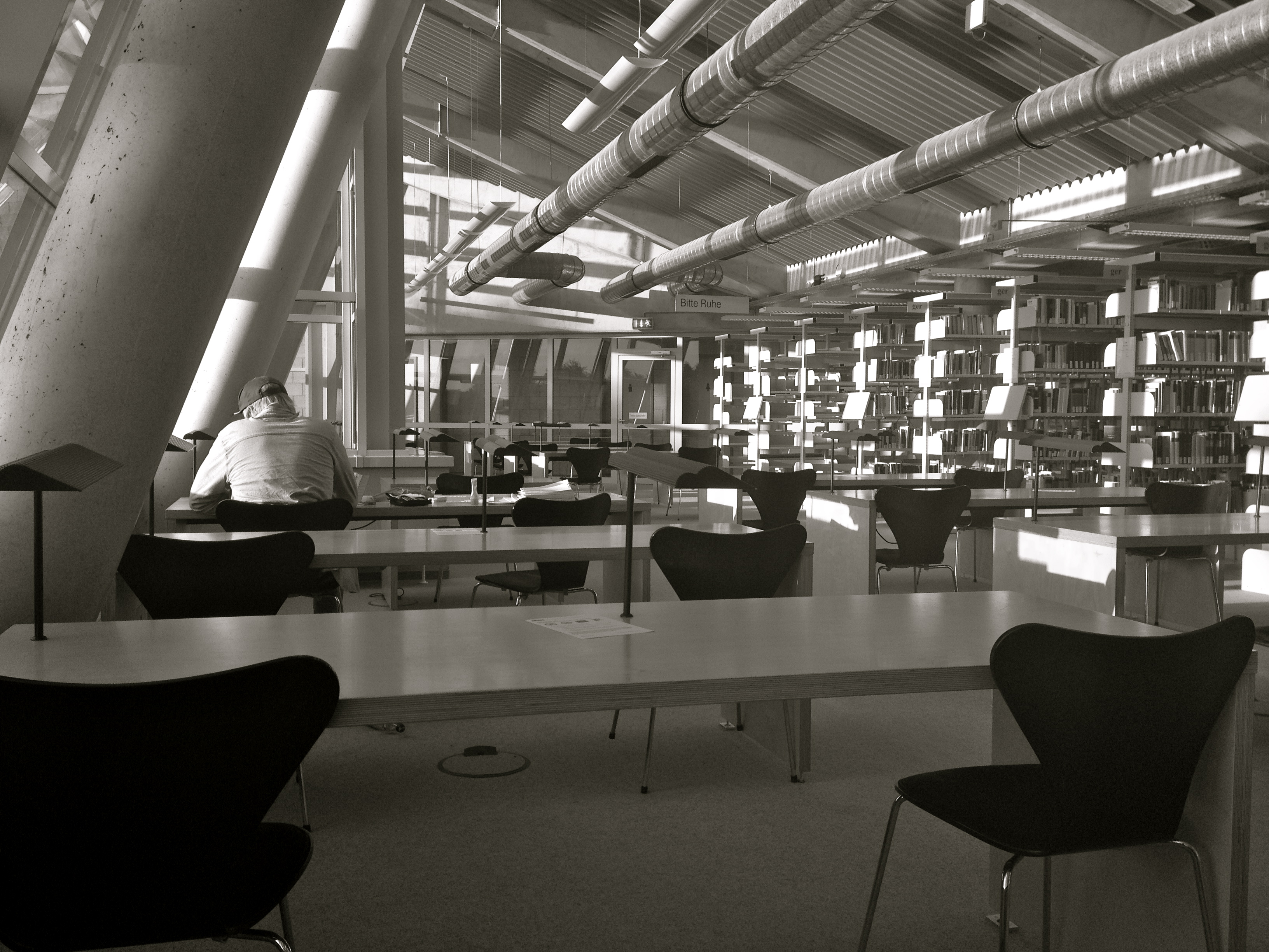 Und wieder bin ich. Abkommen vom gelehrten Lernpfad. Aus Vorlesungsskripten entschlüpft und Seminaraufzeichnungen vergessen. Auf Weltenwanderung, über Einbandstraßen und Seitenwege, den Wortgewalten ausgesetzt zwischen den Regalen campen und Textverweise als Landkarten nutzen, um sich in neues Terrain vorzuwagen. Schwimme über Grenzen und lasse mich treiben. Von Germanistiklanden nach Anglo-Amerika, ein Abstecher in den Orient und weiter in philosophische Gefilde: Gerade Goethe bei G getroffen, den alten Klassiker – hatte zu viel Wein gesoffen, auf italienischer Reise. Neben Reisebildern aus Italien gibt es bei Dickens Notes from America zu lesen. Haruki Murakamis Eismann schmilzt nicht unter japanischer Sonne – er sonnt sich im westlichem Glanz des Erfolgs. Foucault diskursiert, Derrida dekonstruiert, Lacan schaut in den Spiegel und Butler nimmt gender auseinander. Poststrukturalistische Heiterkeit. Himmel, man kann sie gar nicht alle lesen, aber ihre Ideen – sie sind so schön. Ich kann mich in Bibliotheken nicht besser auf das Lernen konzentrieren. Ich bin unermüdlich bemüht abgelenkt zu sein. Auf Streifzug zwischen den Regalen. Kann mich dem Leuchten nicht entziehen. Um die Ecke zieht sich die Schrift weiter.