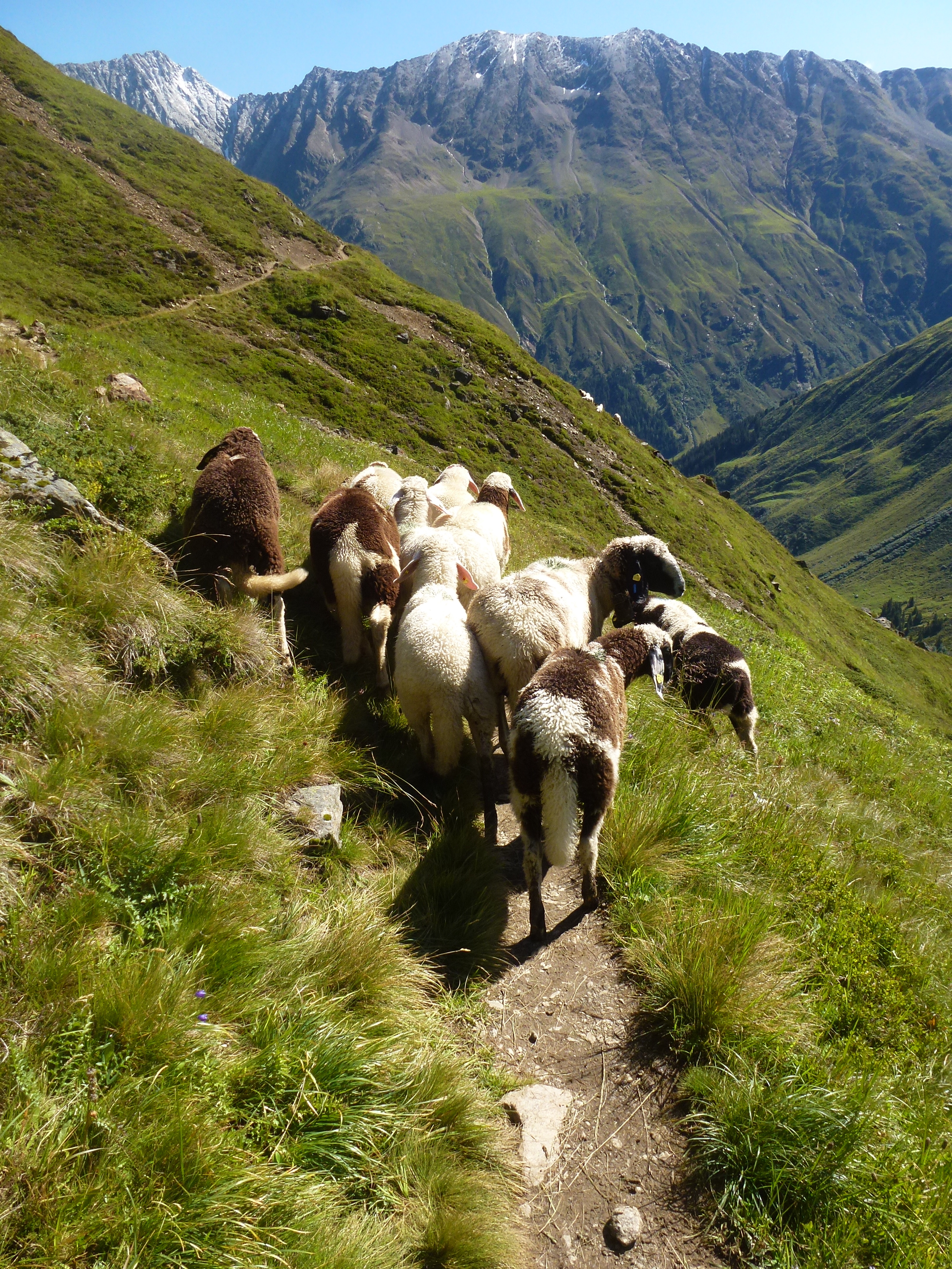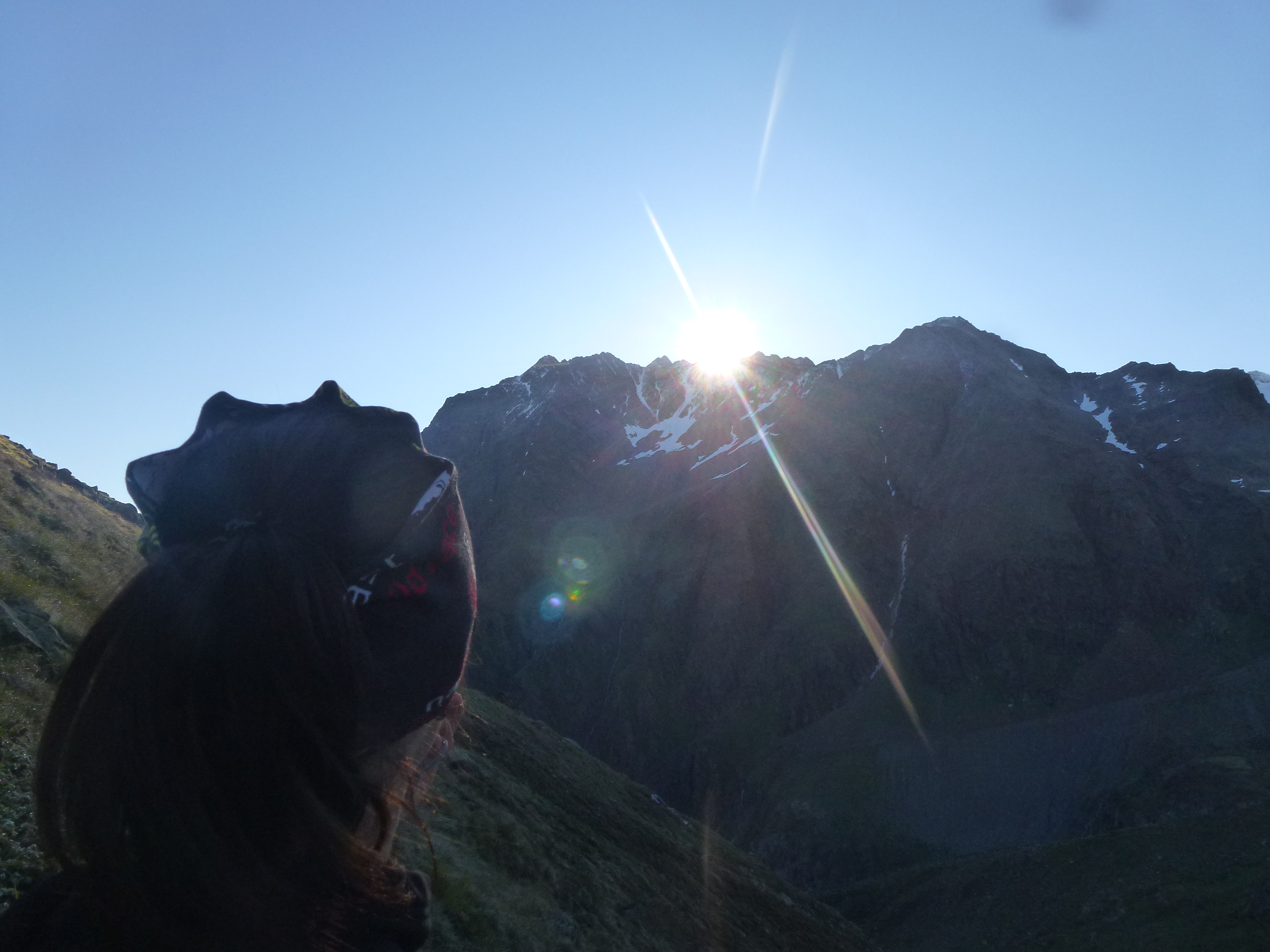 Morgens wecken uns die Sonnenstrahlen erst so richtig auf als wir schon unterwegs sind. Dringen hinter den Gipfeln hervor, fluten langsam die Täler mit Licht, erinnern uns an die Erhabenheit der Berge, ein unglaubliches Panorama. Meine Füße sind allerdings platt. Nach Monaten der Flipflops machen mir die Wanderstiefel zu schaffen. Ich mache mich an den vierstündigen Abstieg, die Mädels machen noch einen Gipfel. Auf meinem Weg ins Tal begegnet mir ein Russisches-Zupfkuchen-Schaf und ich werde für eine Weile von einer blökenden Herde verfolgt. Komme aber schließlich heil unten an und kaufe erstmal 2kg Käse aus der Sennerei vor Ort. Später kommen auch die Mädels ins Tal gesprungen. Es ist mittlerweile wirklich wieder August – kaum auszuhalten in der Sonne. Gegen fünf steigen wir in den VW Bus und düsen wieder gen Deutschland. Immer schön so ein Kurztrip in höhere Gefilde.