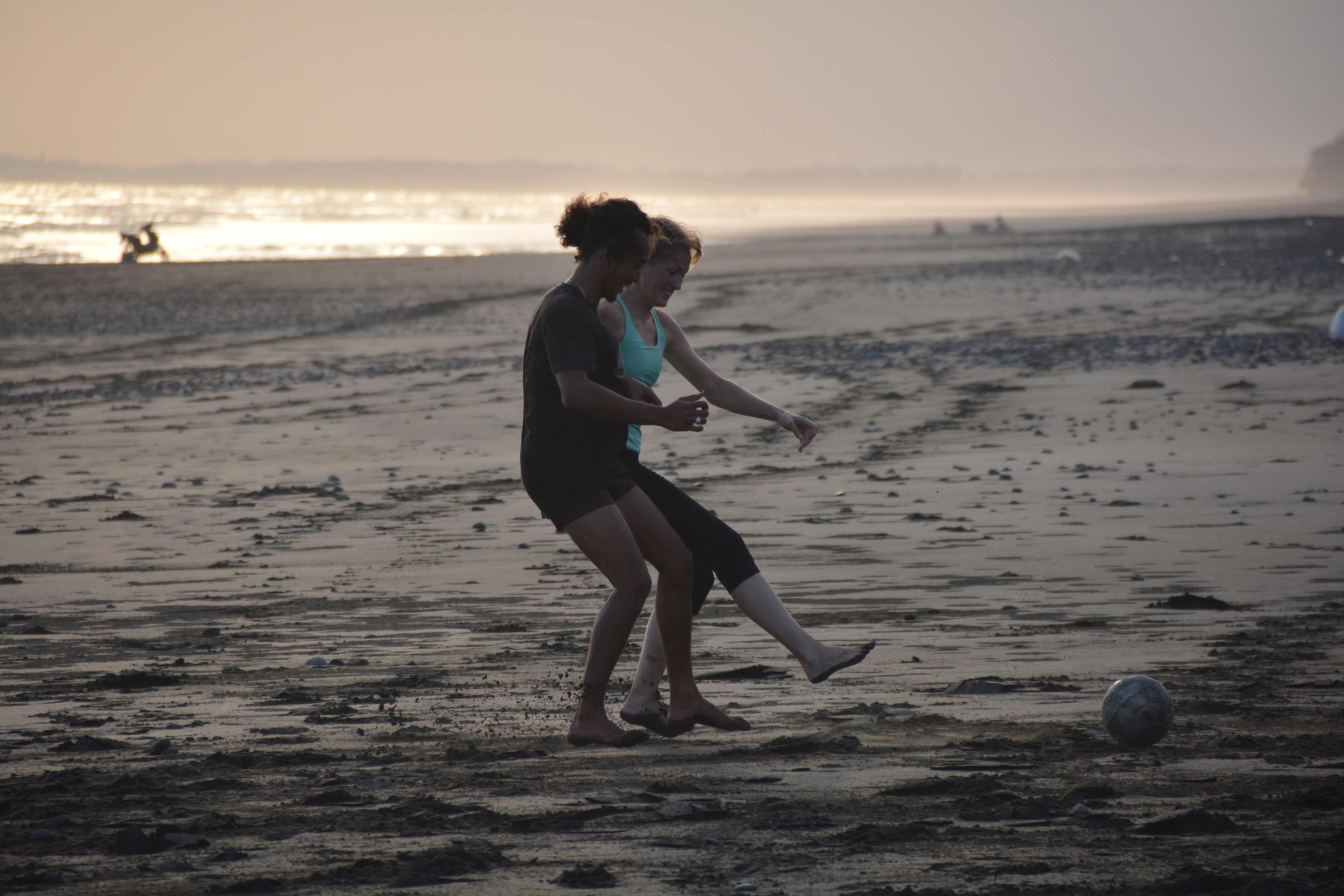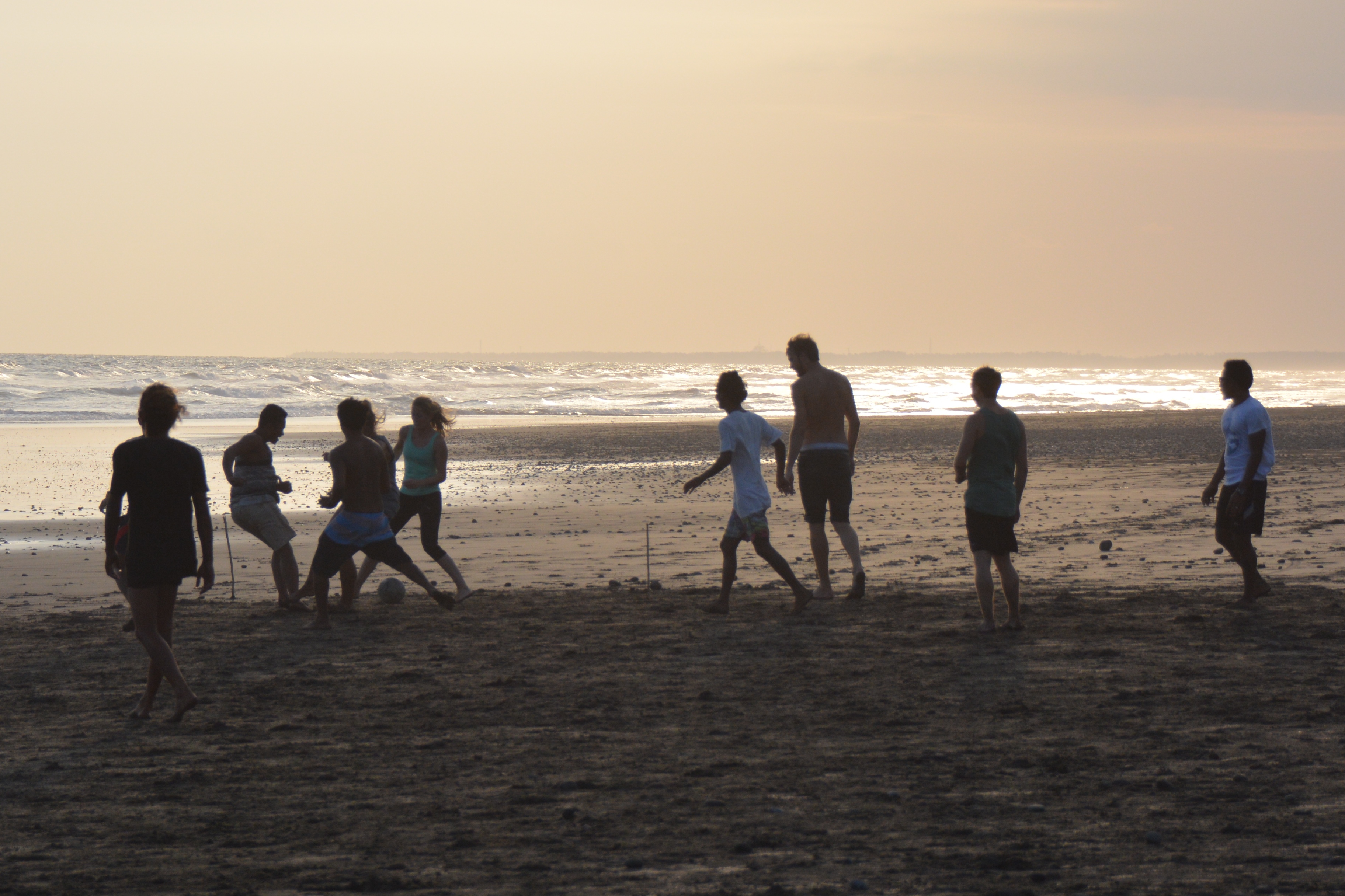 Die Füße bohren sich in den Sand, Zeh stößt auf Stein auf Ball auf andere Gliedmaßen. Sand klebt auf Schweiß, läuft und tropft. Schon nach den ersten Sprints muss ich kurz stehenbleiben. Stütze keuchend meine Hände auf die Knie, japse mit verzerrtem Gesicht nach der feuchtwarmen Luft und folge dem Ball nur noch mit den Augen. Während Agus mit dem Ball davontänzelt, um das nächste Tor für das balinesische Wet Dream Team zu erzielen. Alle Erwartungen bestätigt, trotz kreativer Mädchen-Tshirt-hoch und Festhaltemethoden, scheitern wir gnadenlos. Verlieren das Spiel, aber niemals das Lächeln. Denn hinter uns geht die Sonne unter, die Palmwedel schwingen in leichtem Abendwind und vom Landesinneren her zieht ein Duft von Räucherstäbchen herüber. Abgekämpft und glücklich klatschen wir uns ab und wandern langsam durch den noch warmen Sand die paar Meter zurück ins Camp. Nur ein Fischer, der sein Netz vom Strand ausgeworfen hat, beobachtet uns. Es gibt gerade ganz sicher keinen schöneren Ort auf der Welt. Und keine passendere Zusammenkunft von Menschen als die unsere.