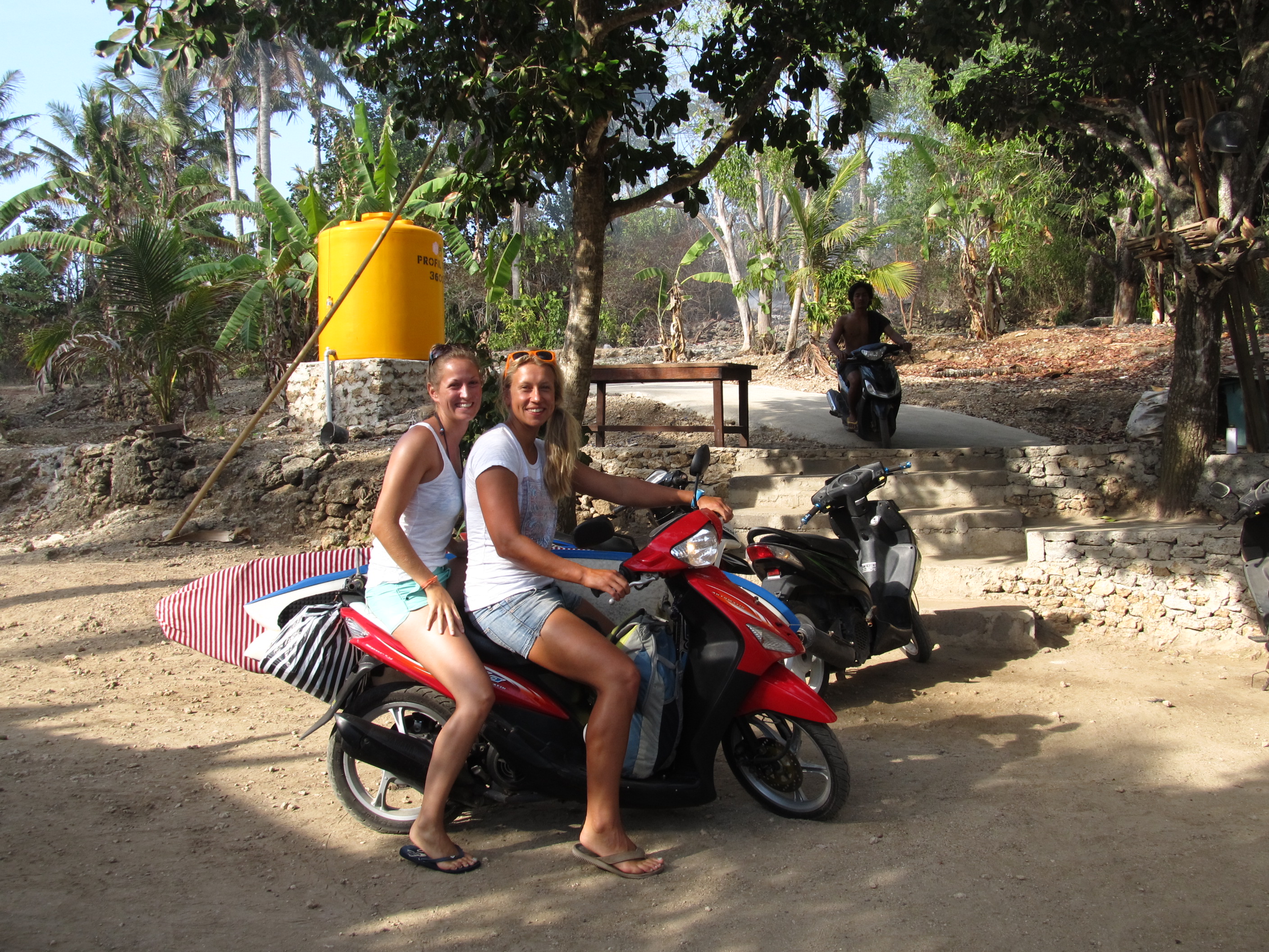 Im MokaMobil Kaffee und Almond Croissants verkaufen, in Medewi das ‚thirteen anchors café‘ eröffnen, Chicken Crossing Schilder basteln, Mopped MitFahrGelegenheit gründen, Bintang Postkarten in Serie produzieren (gibts hier einfach nicht!) – wir könnten uns hier schon beschäftigen. Und gerade liest Lina aus der Zeitung vor, dass Anfang Oktober das Writers&Readers Festival in Ubud stattfindet. Ich will bleiben!! Was passiert eigentlich, wenn wir um 16:00 Uhr nicht am Gate stehen? Muss man nicht mindestens einmal im Leben einfach den Flug verpassen? Stattdessen ist tatsächlich der letzte Tag angebrochen und diese Realität ist stärker als die andere, die mögliche aber, seien wir ehrlich, unwahrscheinliche Realität. Ein paar Stunden noch, bis es Zeit ist den Kontinent zu wechseln. Ein letzter Sonnenaufgang im line-up von Kuta beach heute morgen, ein finales Eclair im Cafe Moka, eine abschließende Scooterfahrt. Die Boards entwachst, der Backpack steht bereit, Jacke und Mütze im Handgepäck in Erwartung des Winters. Aber die Vorstellung einer langen Hose ist noch unerträglich. Das Braun darf sich nie wieder abreiben, unsere Sommeridentität gefällt uns besser, als die blasse Existenz. „Und wenn jemand sagt ich sei nicht braun geworden, zieh ich mich aus.“, sagt Lina und bezieht sich auf eindeutige Bikiniabdrücke. Dem Ozean so nahe, die Haut konstant so salzig. Vor allem die Brandung wird fehlen. „All I ever wanted was a home break“, so könnte ein Buch beginnen.