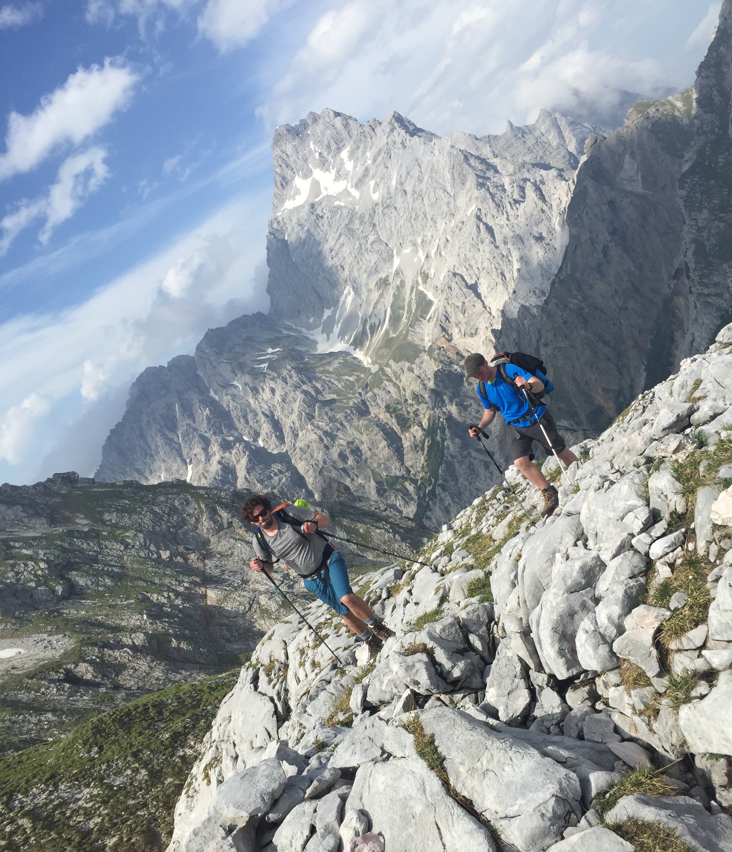 Als es vollbracht ist noch schnell ein Nachher-Foto und dann schälen wir die Schuhe mit der Haut von den Füßen. Trotz Schmerz: wir haben die Freiheit wiedererlangt! Ein Fußbad im See und dann springen wir in Adiletten auf das nächste Boot, mit den unschuldigen Pauschaltouristen, die soeben aus dem Biergarten gefallen sind und nun aus der Harmonie, da sie mit großen Augen die Rötungen an Bastis Fersen inspizieren. „Sie haben aber nicht solche Blasen, oder?“ fragt mich eine ältere Dame ganz schockiert. Ich schüttle den Kopf und Blicke über den See, die steilen Felswände hinauf. Bald müssen wir die nächste Tour planen!