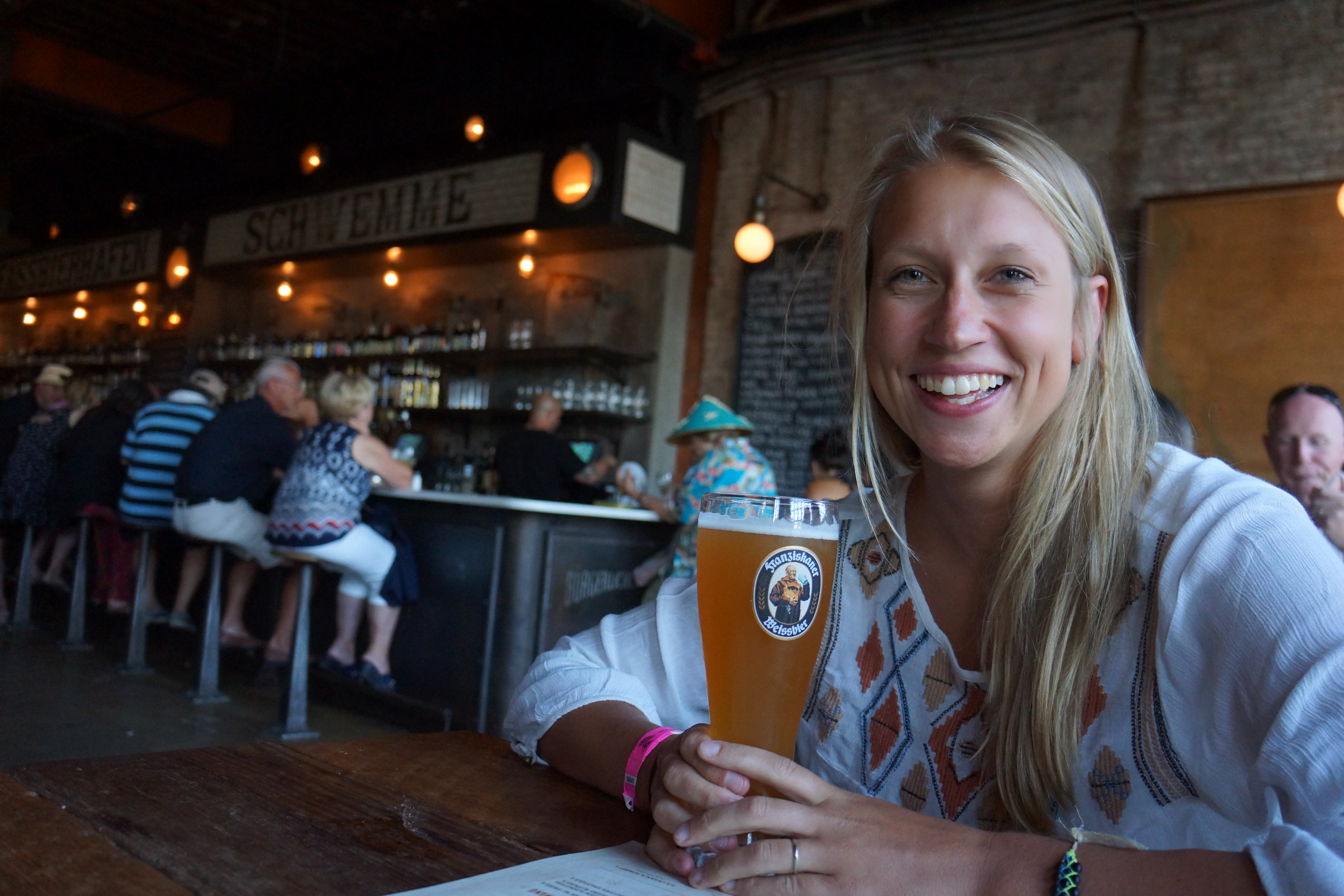 Die Tage hier haben keinen Takt, sie fließen dahin. Vom morgendlichen Bagel – New Jersey Pork Roll! – oder Eggs, Bacon und Wheetgras Shots, direkt an den Strand, ins Meer die Hitze ertränken und den Schweiß abwaschen, Volleyball am Nachmittag oder Abend, dann in die die nächste Bar, oder auch in die German Beer Hall in Asbury, als Finale in der Hot Tub Nachts die Sterne beobachten, nicht ohne frisch gezapftes Bier von der hauseigenen Terrassenbar natuerlich . Eines ist mir jetzt klar: Die Prohibition war die dümmste Idee, die amerikanische Politiker jemals hatten. Hier ist Alkohol im Spiel. Für den ersten Volleyball Abend am Strand von Sea Bright ist das wörtlich gemeint – Liz, die uns mit Getränken beliefert, grinst vom Spielfeldrand aus, als wir den ersten Schluck vom Gatorade nehmen, ein Sportgetränk, das jetzt verdächtig nach Vodka schmeckt. Dabei habe ich den Cocktail im Beachclub schon fast vergessen, den wir vor dem Spiel als Auftakt geschlürft haben. Danach geht es direkt weiter ins DIVE, eine Bar an der Meile von Sea Bright. Nicht unbedingt bekannt für die besten Drinks, wie mir Maschas Freund Dan der Bartender erklärt, aber das Essen ist hervorragend, vor allem die Tacos mit Pulled Pork und die Austern – ein Bier dazu geht natürlich auch hier. Darauf folgt noch eins, dann kommt der Zimtschnaps Fireball und mir klingen die Glocken in den Ohren und draußen rieselt leise der Schnee – schmeckt wie Weihnachten. Alle Bars hier sind jedoch Nichts gegen Donovan’s. Donovan’s! Vor zwei Jahren wurde die beliebte Strandkneipe von Sandy zerstört, der Supersturm hat hier fast die gesamte Küste zusammengeweht. Heute, zwei Jahre später, sind die meisten Schäden behoben. Die Menschen haben ihre Häuser wieder aufgebaut, der Strand ist wieder breiter geworden, weil im Winter Sand durch große Rohre vom Meeresgrund ans Ufer gepumpt wurde. Nur Donovan’s blieb bisher geschlossen. Vor ein paar Wochen machten Gerüchte die Runde, Hey, habt ihr das auch gehört, Donovan’s öffnet seine Tikibar am Strand wieder! Dieses Wochenende war es tatsächlich soweit. Seit Freitag um 10 Uhr gibt es kein anderes Thema mehr, geschäftiges Räumen an der Bar, die ersten Kunden warten gespannt und beobachten jede Regung des Personals. Ungeduld macht sich breit. Mir ist der Alkohol ziemlich schnuppe, irgendwie finde ich das alles hier sogar ziemlich nervig und lächerlich, jedes zweite Wort ist BEER!, booze ist das Hauptthema, immer und ueberall. Aber die Spannung in der Luft macht sogar mir als Touri klar, wie besonders diese Wiedereröffnung sein muss. Dann irgendwann zischt die erste Dose Bier und ab da gibt es kein Halten mehr. Samstag Abend: Wir sitzen im Sand, der Ice Tea hat einen im Tee und wir auch bald, während wir halb ernst halb albern auf Bruce Springsteen warten. Bruce ist hier in New Jersey zu Hause und das letzte Mal ist er wohl tatsächlich im Donovan’s aufgetaucht und hat ein kleines Spontankonzert gegeben, in Latzhose und mit Cap. Heute Abend taucht der Boss nicht auf, aber der DJ mischt in die Chartmusik des Tages langsam die Elektrorythmen der Nacht. Beachgirls in kurzen schwarzen Kleidern schwingen die Hüften, an der Tikibar dauert es 20 Minuten bis ich einen Drink bekomme. Die Hawaiiketten am Bambushäuschen der Tikibar schwingen in der leichten Brise, die Scheinwerfer beleuchten den Strand und den instabilen Bambuszaun, der uns symbolisch vom restlichen Teil des Strandes abtrennt. Hier ist trinken erlaubt, ‚ dort draußen‘ selbstverständlich nicht. Deshalb ist Donovan’s so eine sensation: Ganz offen und das legal am Strand trinken können, ohne die Bierdose im Shirt einzuwickeln oder den Alkohohl in Trinkflaschen umfüllen zu müssen. Kannste ja keinem Europäer verkaufen, dass Trinken am Strand etwas  Außergewöhnliches ist. Aber hier eben schon…Der Sonntag ist dann ein richtiger Sonntag. Auf der Garagenauffahrt steht der dicke Grill, davor parken die dicken Autos. Es gibt BBQ: Ribs. Coleslaw. Mudpie. Sangria Bowle. Und wie sollte man den Tag anders überstehen: Budwiser. Budwiser. Budwiser. Ich lerne Kan Jam und Cornhole – zwei Spiele für den Garten, so normal hier wie Bodgia oder Federball bei uns. Dieser Trip ist wahrhaft eine kulturelle Studie, ich bin mittendrin in der amerikanischen Kultur.