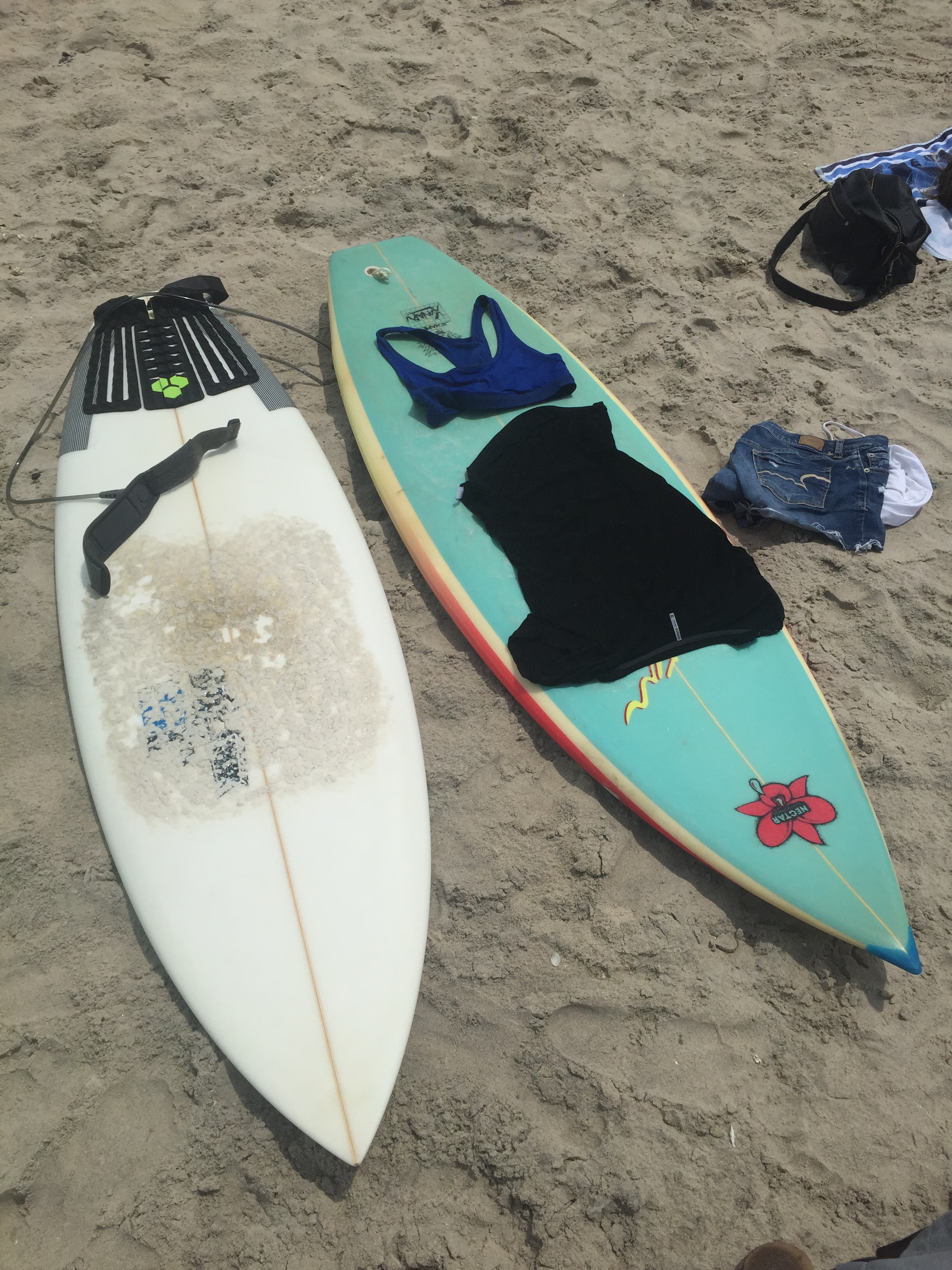 Kommen wir zum Wasser. Da faellt mir ein: Haie. Diese Woche ist „Shark Week“ im Discovery Channel, der laeuft im Dive non-stop. Menschen tauchen in Käfigen zu den grossen Weissen hinab, andere lassen sich in Kettenhemden von den Viechern anknabbern oder versuchen sie auf den Rücken zu drehen und so in Trance zu versetzen. Berichte von Haiangriffen und fehlenden Gliedmaßen, von wissenschaftlicher Forschung und Erkenntnissen. Man soll ja nicht so gegen Haie haten, wieder kommen die Argumente auf  ‚es sterben mehr Menschen durch Hunde, Sektkorken und Kokosnüsse‘, aber ein mulmiges Gefühl bleibt. Besonders, weil es dieses Jahr hier an der Ostküste schon diverse Sichtungen und einige Attacken gegeben hat. Super Vorbereitung: Dan nimmt Mascha und mich mit zum Surfen, ein paar kleine Wellen spuckt die Ostküste für uns aus. Sobald ich auf dem Brett über den ersten Wellenberg hinweg paddle, die Gischt auf den Lippen schmecke und die Paddelbewegung sich wieder wie das Natürlichste der Welt anfühlt,  sind alle Haie laengst vergessen. Endlich wieder surfen! Es ist so heiß, an einen Neoprenanzug ist nicht zu denken. Im Badeanzug gibt es von der Sonne gleich eine Quittung, in Form eines runden Kreises auf dem Rücken und rote Schultern. An meinem letzten Morgen floaten wir im sommerlichen flow einen Fluss hinunter – Dan auf dem Stand up paddle Board, Mascha auf einer komfortablen Luftmatratze mit Rückenlehne und ich auf einem eher weniger komfortablen Reifen, der eigentlich eine snow tube ist. Die Leute auf den Booten winken uns zu und gucken ein bisschen verwirrt. Die Tide ist entscheidend. Jetzt treibt uns die Flut in Richtung Norden, später soll die Ebbe uns zurück bringen. Dafür müssen wir warten, Wo? Natürlich in einer Bar Schrägstrich Restaurant. Ganze vier Stunden Sonne, Drinks, Food und Schwimmen. Dabei beobachten wir den Fluss, sehen wie die Strömung sich verlangsamt, wie kleine Wellen und Wirbel entstehen und wie schließlich, ganz langsam, das Wasser in die andere Richtung zu fließen beginnt…