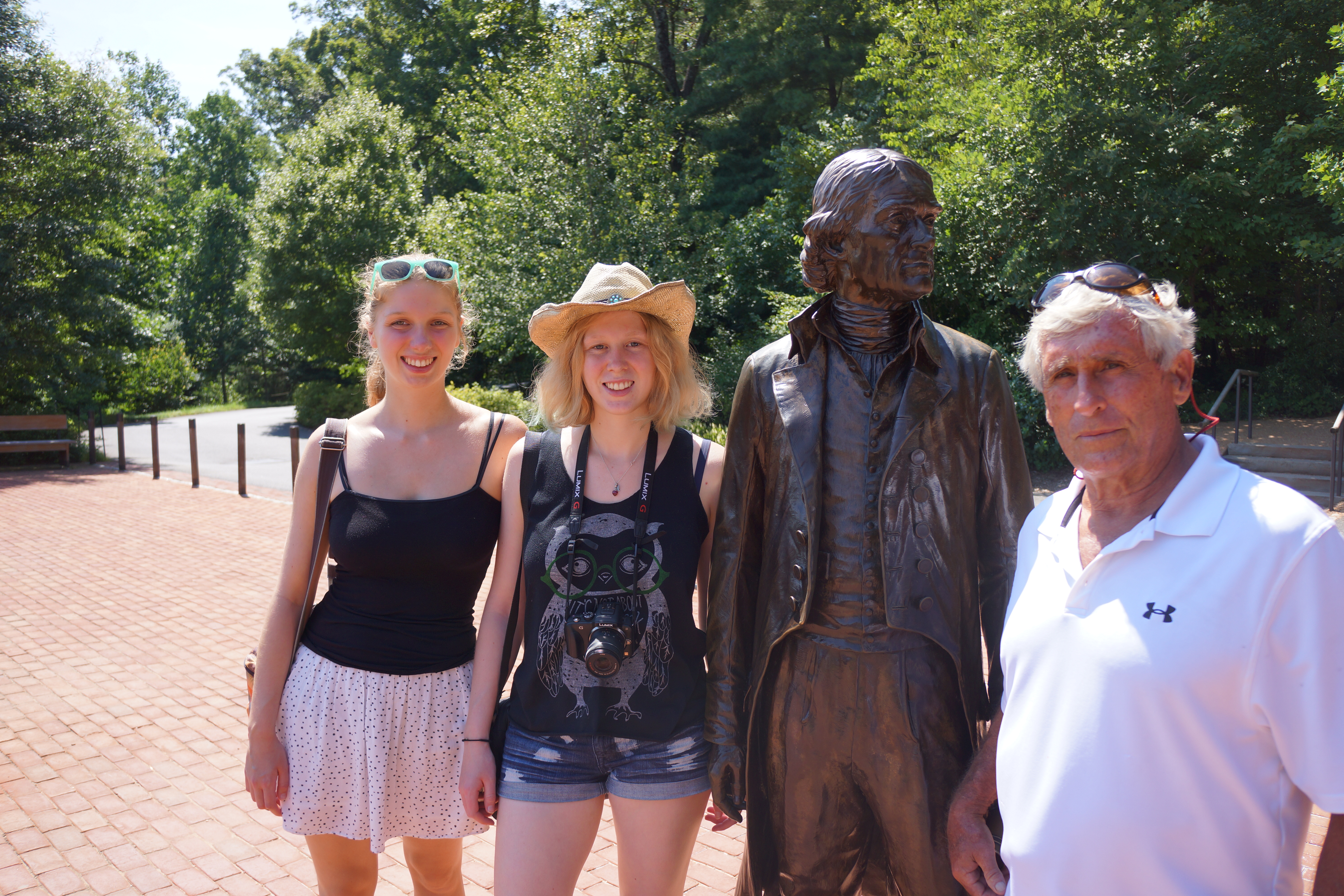Ein Ausflug nach Monticello ist kein Kurztrip nach Italien, viel mehr ein Ausflug in die Amerikanische geschichte. Gen Westen fahre ich mit Jim und Rickys Nichten zu Thomas Jeffersons Plantage Monticello. Jefferson, 3. Präsident der USA, hat sich dort ein hübsches Anwesen auf einem kleinen Hügel – „monti cello“, altitalienisch für „kleiner Berg“ – aufgebaut. Oder eher seine 600 Sklaven, die er während seiner Lebenszeit besaß. Eigentlich war er ja gegen Sklaverei. Naja, ist halt nicht so ganz logisch…Die Präsidenten kann ich immer noch nicht alle aufzählen, aber Jefferson werde ich wohl jetzt nicht mehr vergessen.