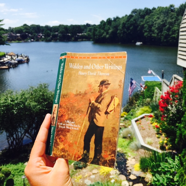 Foto 23.07.15 13 34 00„Isn’t that funny!“ Jeder Mensch hat seine bestimmten sprachlichen Wendungen, die er oder sie häufig benutzt. Eine Art Kommunikationsmerkmal, ich sage beispielsweise ständig „ach krass!“, um eine Aussage zu kommentieren, und dann ist da dieses Wort „mega“, was sich seit einiger Zeit in meinen Wortschatz eingeschlichen hat. Die charakteristische Wendung von Shirley, der Nachbarin meiner housesitting hosts Gil und Liz, ist ein „Isn’t that funny?“, mit einer starken betonung auf dem u. Eine herzensgute 70jährige Dame, die aber noch durchaus agil ist – ihr acht Monate junger Riesenwelpe Houdik haelt sie auf Trab! Ihrem Aussehen nach muss sie japanische Wurzeln haben, geboren ist sie jedoch auf Hawaii. Ihre Erzaehlungen verraten, dass sie schon fast ueberall auf der Welt gewesen ist. Bald geht es los in die Rocky Mountains, naechstes Jahr stehen die Dolomiten auf dem Reiseplan. Galapagos ist noch nicht lange her. Lebenslaeufe! Shirley nimmt mich am Sonntag Morgen mit auf den See. Ihr Pontoon Boat vor dem Haus ist eine Art schwimmende Terrasse, eine viereckige Plattform, die fuer ein Boot etwas zu unfoermig daherkommt. Aber sie schwimmt. Unter geraeuschlosem Elektromotor schippern wir gemaechlich hinaus. Der See? Lake Thoreau. Wieder einer dieser Zufaelle, die auf Reisen einfach passieren und mich kurz sprachlos  dastehen lassen. Benannt nach dem amerikanischen Naturalisten und Schriftsteller, Henry David Thoreau, liegt dieser See also genau vor meiner Nase, beziehungsweise mein zu sittendes Haus sitzt direkt an seinem Ufer. Wie das Schicksal es so will, habe ich auf diese Reise nur ein einziges Buch mitgenommen, Backpack und Buecher verTRAGEN sich schlichtweg nicht und auf ein kindle wollte ich verzichten. So habe ich also ein Buch ausgewaehlt, welches, wie sollte es anders sein, natuerlich WALDEN von Henry David Thoreau ist. Und dann lande ich hier, per Zufall, am Lake Thoreau. Natuerlich ist es nicht DER Walden Pond. Der „richtige“ Walden Pond, an dem Thoreau 2 Jahre im Wald verbrachte, liegt in Massachusetts. Und vermutlich haette Thoreau hier in Reston sofort die Flucht ergriffen, denn Lake Thoreau wurde kuenstlich gebaut, um die Wohngegend hier zu entwickeln. Der Bebauungsplan sieht fuer fast jedes Haus am See eines dieser Pontoon Boote vor, wie Shirley eines hat. Die ganze Gegend hier ist ein geplantes Konzept, wohnen am (kuenstlichen) Gewaesser. Thoreau als Freund von unberuehrter Natur und selbsternannter Anti-Materialist wuerde sich im Grab umdrehen, wuesste er, dass diese domestizierte und kapitalistisch motivierte Badewanne nach ihm benannt ist. Er saehe sein „The mass of men lead lives of quiet desperation.“ vermutlich in diesem Konzept bestaetigt. Dennoch, es ist ein lustiger Zufall, der See und mein Buch. Und so aufgesetzt wirkt das Leben hier gar nicht, nur ein bisschen konstruiert idyllisch vielleicht. Ich jedenfalls haette nichts gegen ein Stegboot im Garten, einen See in dem wilde (…) Schildkroeten leben und in dem schon morgens frueh Stand Up Paddeler ihre Runden ziehen und Triathlethen trainieren.