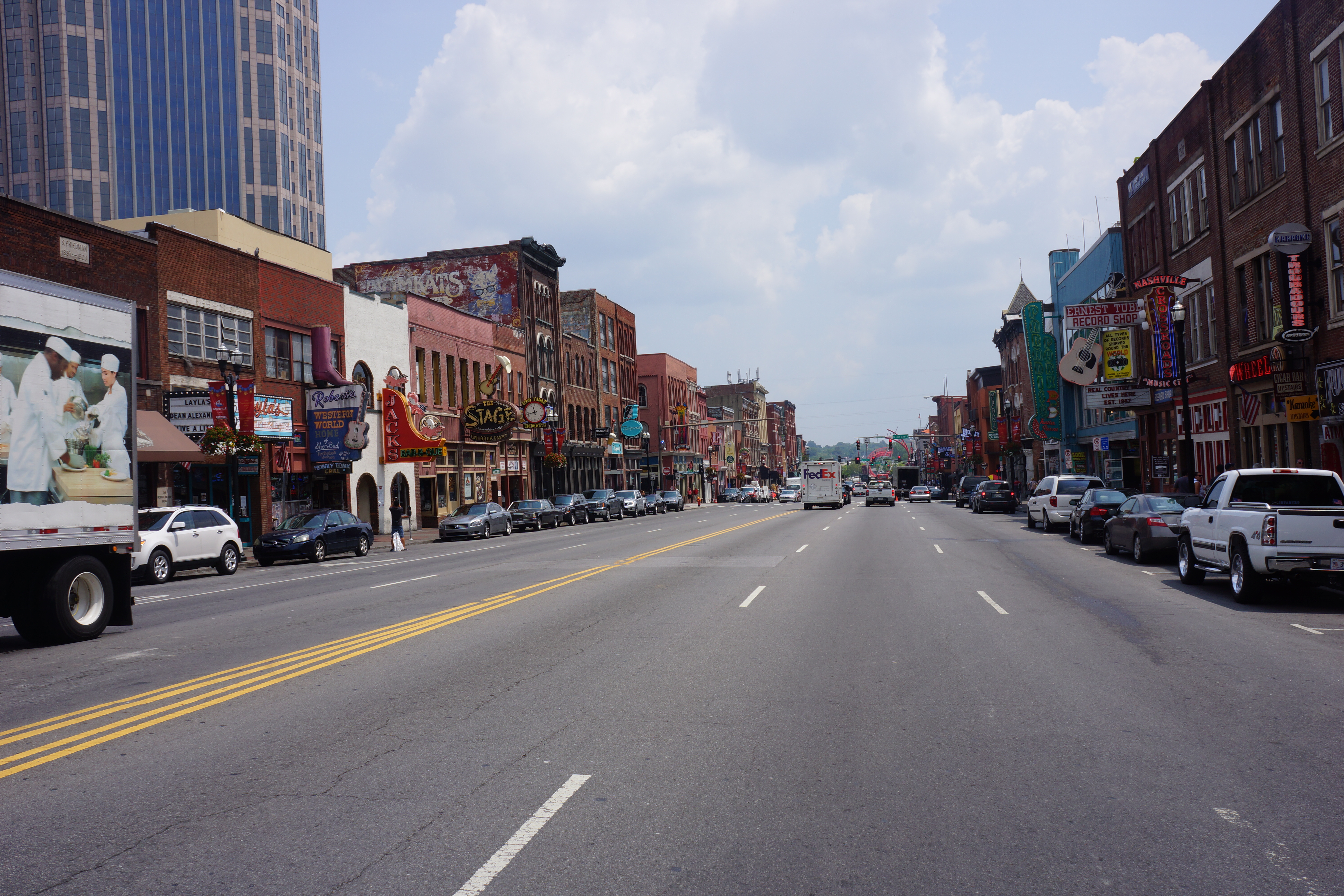 Müdigkeit und Hitze – kein gutes Duo. Deshalb habe ich die eintägige Stippvisite in Nashville heute noch erheblich weiter verkürzt. Um 9:30 Uhr rollte der Greyhound in Nashville ein. Nach vier Stunden war für mich schon wieder Ende Gelände, Stadtbummel bei 38 Grad ist heißer als ein Höllenbesuch. Ursprünglich hatte ich geplant einige Tage in der Stadt zu verbringen, um dem Country Vibe so richtig auf die Rhythmen zu fühlen. Aber dann wirkte das plötzlich vor ein paar Tagen doch nicht mehr so attraktiv: teure Unterkünfte, heiße Tage, alleine Bars besuchen und überhaupt Stadt statt Natur. Nö, keine Lust. Der Bus war schon gebucht, ich habe einfach einen Flieger drangehängt: Nashville – Los Angeles. Trotzdem, ein tag in der Stadt der Country Größen sollte drin sein.