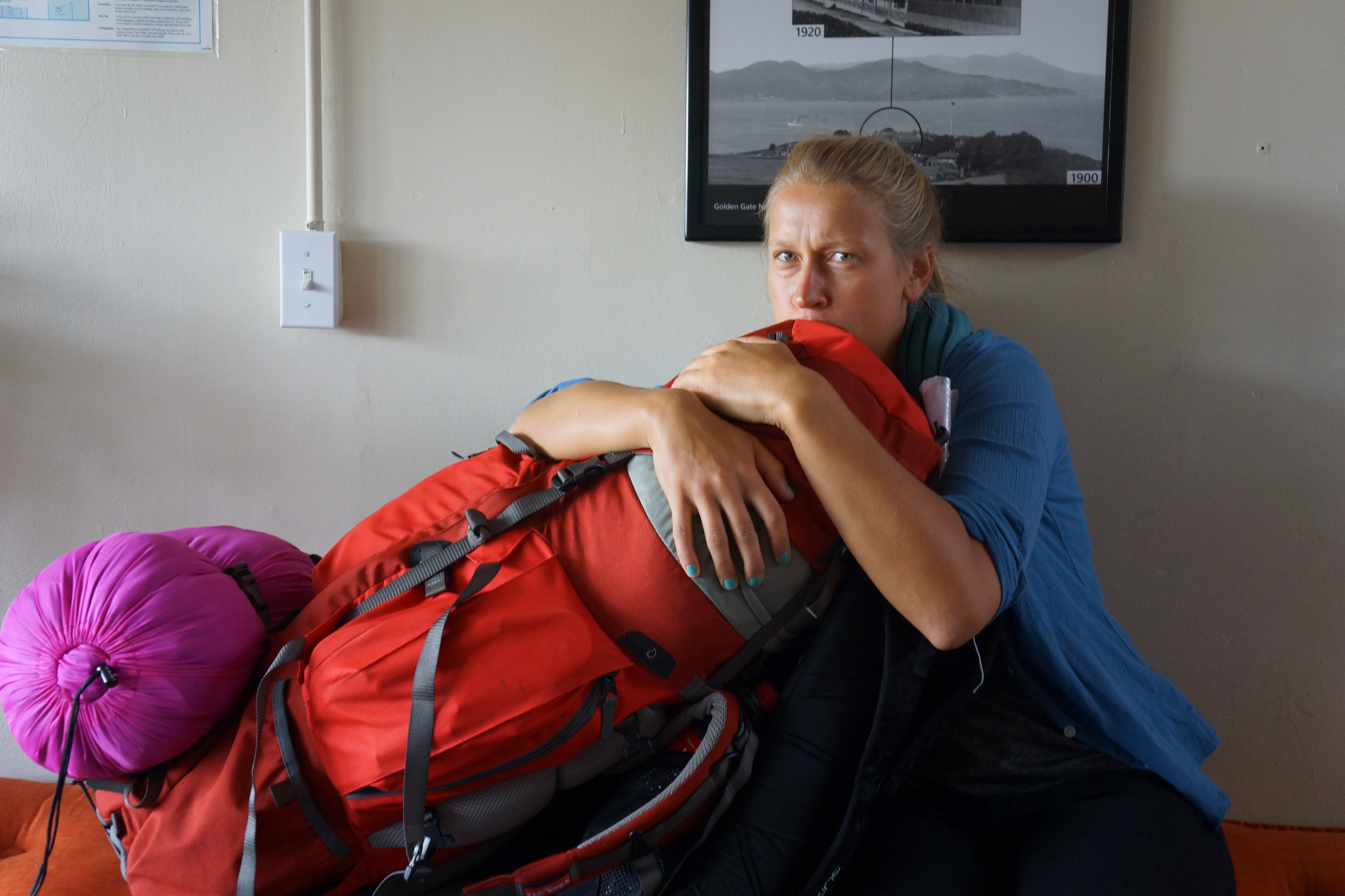 4 Tage San Francisco. Zwei Nächte dürfen wir nochmal bei Anton und Lena auf der couch pennen, die anderen beiden Nächte haben wir ein Hostel. DAS Hostel, direkt am Fort Mason, das beste Hostel der Welt. Seit ich 2013 das erste Mal hier und danach hin und weg war (https://blogmopped.com/2013/02/23/the-left-coast/), gab es keine andere Möglichkeit als wieder herzukommen. Franzi und ich haben die letzten zwei Betten ergattert, in der Hauptsaison ein relativ stolzer Preis für ein Hostel. Aber das ist es wert. Eine Übernachtung im 22 Bett-Zimmer ist immer eine Erfahrung. Gegen zwei Uhr trampelt jemand in den Schlafsaal, erklimmt unter Stirnlampenlichtgewitter direkt ‚in my face‘ ächzend das Hochbett über mir und ich habe Angst, dass gleich alles zusammenstürzt. Der Opa neben Franzi pupst und röchelt abwechselnd. Vorm zu Bett gehen hat er uns seinen hautfarbenen Schlüpper und nackten Oberkörper präsentiert. Aber irgendwie ist er süß und wir fragen uns was er hier tut. Hat er kein Geld für ein privates Zimmer? Warum ist er alleine in San Franzisco? Anton hat von einem Hostelerlebnis berichtet bei dem ein älterer Mann eine Operation vor sich hatte, deshalb ein günstiges Zimmer nehmen musste, er hatte kaum genug Geld für die Operation. Wir überlegen, ob unserem Opa auch so etwas bevorsteht. AM nächsten Abend aber lernen wir, dass er durchaus genug Kohle hätte für ein eigenes Zimmer  – ihm gefällt die Hostelatmosphäre. Und nicht ein Krankenhausbesuch hat ihn hierher verschlagen, sonder ganz simpel die Stadt selbst, ein jährlicher Besuch in San Francisco, Tradition.