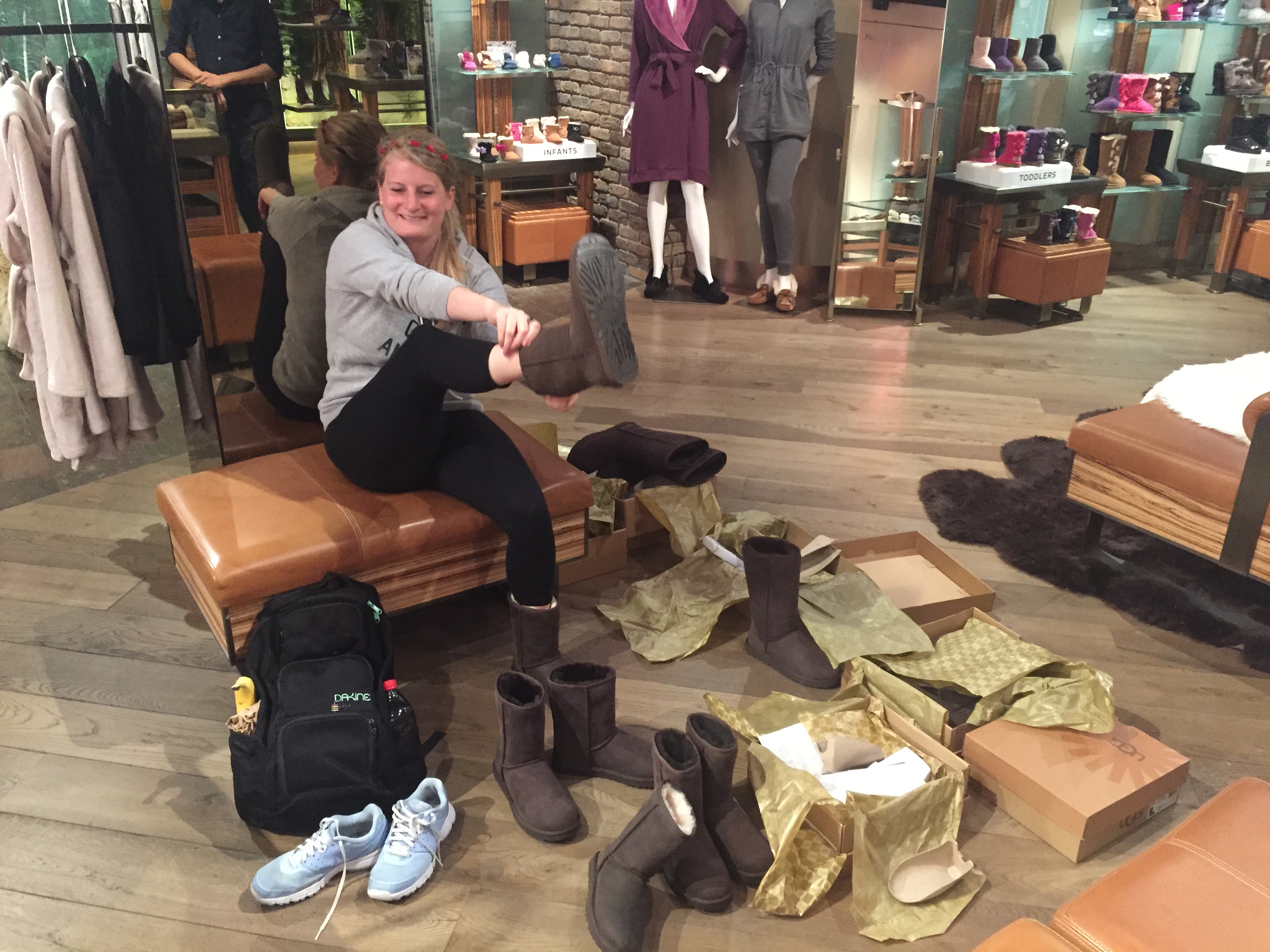 Mein Budget ist höchst gefährdet! Da denkt man der Backpack limitiert das Shopping, das studentische Budget begrenzt die Luxusausgaben und dann steht man doch vor den Regalen und kann nicht anders. Zumal es Auswege aus diesen Grenzen gibt: Franzi kann theoretisch etwas von mir mitnehmen und mein Konto ist zwar schon leerer als am Anfang, durch die vielen Couchsurfing, Wwoofing und Housesitting Nächte jedoch noch nicht so strapaziert wie erwartet. Das stockt das Budget für das ein oder andere stoffliche Mitbringsel auf. In Amerika nicht dem Kapitalismus zu fröhnen wäre zudem völlig unauthentisch, das geht nicht auf diesem kulturellen Erfahrungstrip. Also rein in die Shoppingcenterhölle! Es stellt sich heraus, dass Franzi meine Glücksfee ist – dabei wollte SIE doch einkaufen und ich nur beratend beistehen. Ich packe am letzten Tag persönlich ihren Rucksack, damit auch ja alles reinpasst.