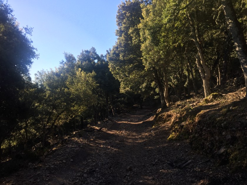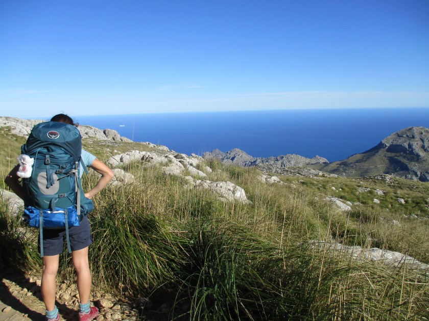 Ironman in Port d’Alcudia heute. Überall hängen die Schilder. Wir scherzen noch, dass wir ganz froh sind heute keine diversen Kilometer schwimmen, radeln und rennen zu müssten. Hätten wir gewusst, was heute auf uns wartet. Ironman Qualitäten hatte dieser Wandertag streckenmäßig zwar nicht ganz, aber psychologisch war die Wanderung ziemlich strapaziös. Kurz und knapp: Die Etappe von Lluc bis Soller hat uns um die 30km bei voller Sonneneinstrahlung auf die Sohlen gespult, inklusive Blasen an fast jeder erdenklichen Stelle der Zehen. Wie kann man auch so blöd sein und nur mit Laufschuhen losziehen. Dazu machte uns eine ‚verseuchte‘ Quelle zu schaffen, auf die wir zwecks Trinkwasserversorgung gezählt hatten. Das hieß für die letzten 3-4 Stunden kein Wasser mehr. Feste Nahrung beschränkte sich auf eine letzte Dose Thunfisch und ein paar Mandeln. Ich war sowas von bedient! Ronja war gegenüber dieses Nahrungsmangels deutlich toleranter, ich dagegen war für ein, zwei Stunden richtig schlecht drauf. Aber wie die meisten nervigen Situationen stellte auch diese mich auf eine lehrreiche Probe. Irgendwann war ich selbst so genervt von meiner schlechten Laune inmitten dieses Paradieses, eine unerträglich Absurdität, dass ich mir selbst befahl mich zusammenzureißen. Du wolltest doch Abenteuer! Anstrengung! Unkonventionalität! Und immer die eine Frage: Bringt dich das was wir hier tun gerade um? Nein! Würdest du jetzt lieber am Schreibtisch oder in der Uni sitzen? Nein! Stop complaining then!